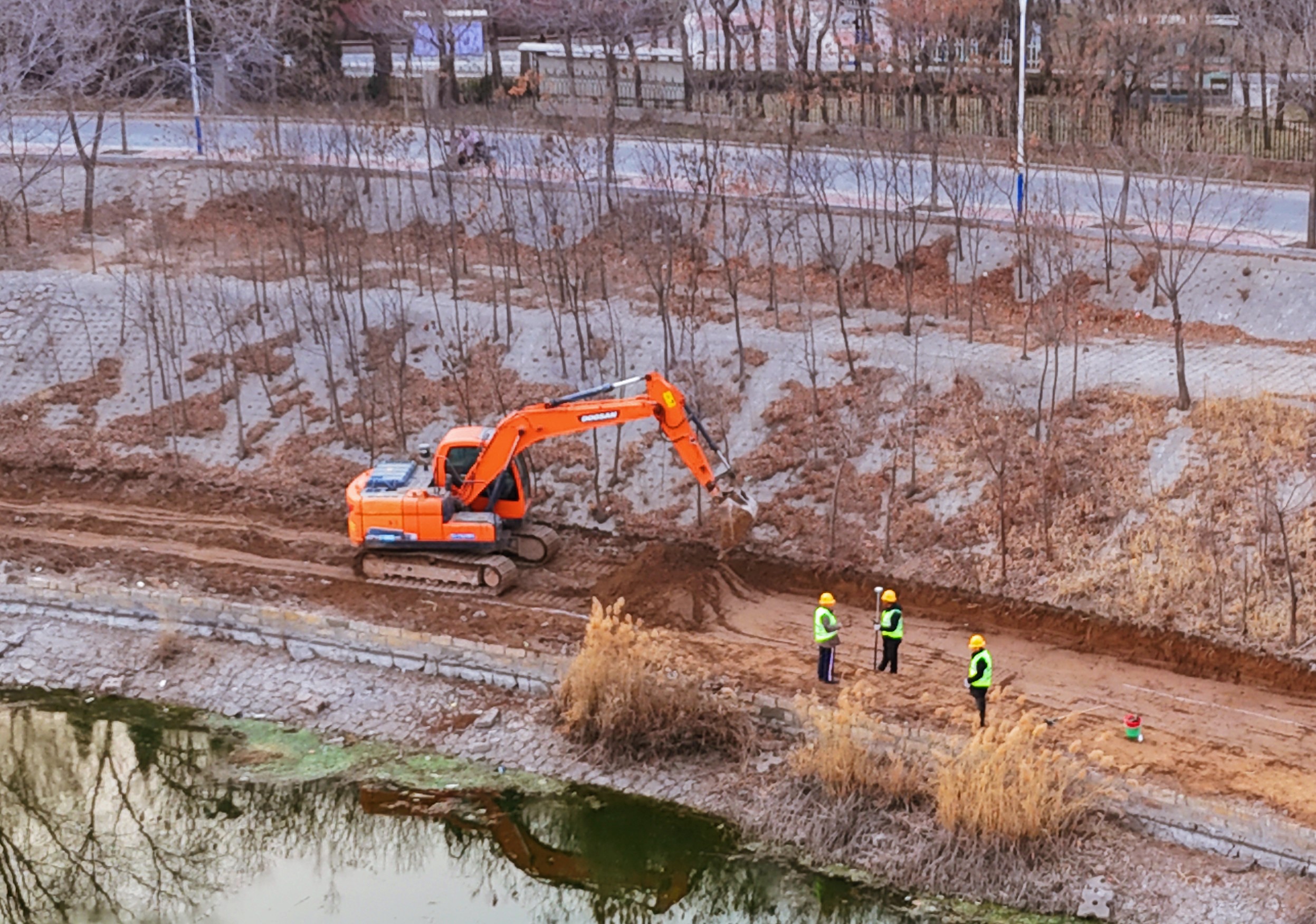 滏陽河市區段(干馬橋至大慶路橋)生態河道治理工程位于滏陽河衡水市區下游段,涉及河段全長5.6公里。工程主要包括河岸海綿化治理、排水口整治、路面改造、綠化提升,以及驛站、照明等配套便民設施建設,旨在進一步改善滏陽河市區段兩岸景觀環境和休閑品質,提高城市防洪排澇能力和雨水收集利用水平。2024年12月5日,在市城管綜合行政執法局積極協調相關部門,在充分調研、綜合論證、精心設計后,項目正式開工。