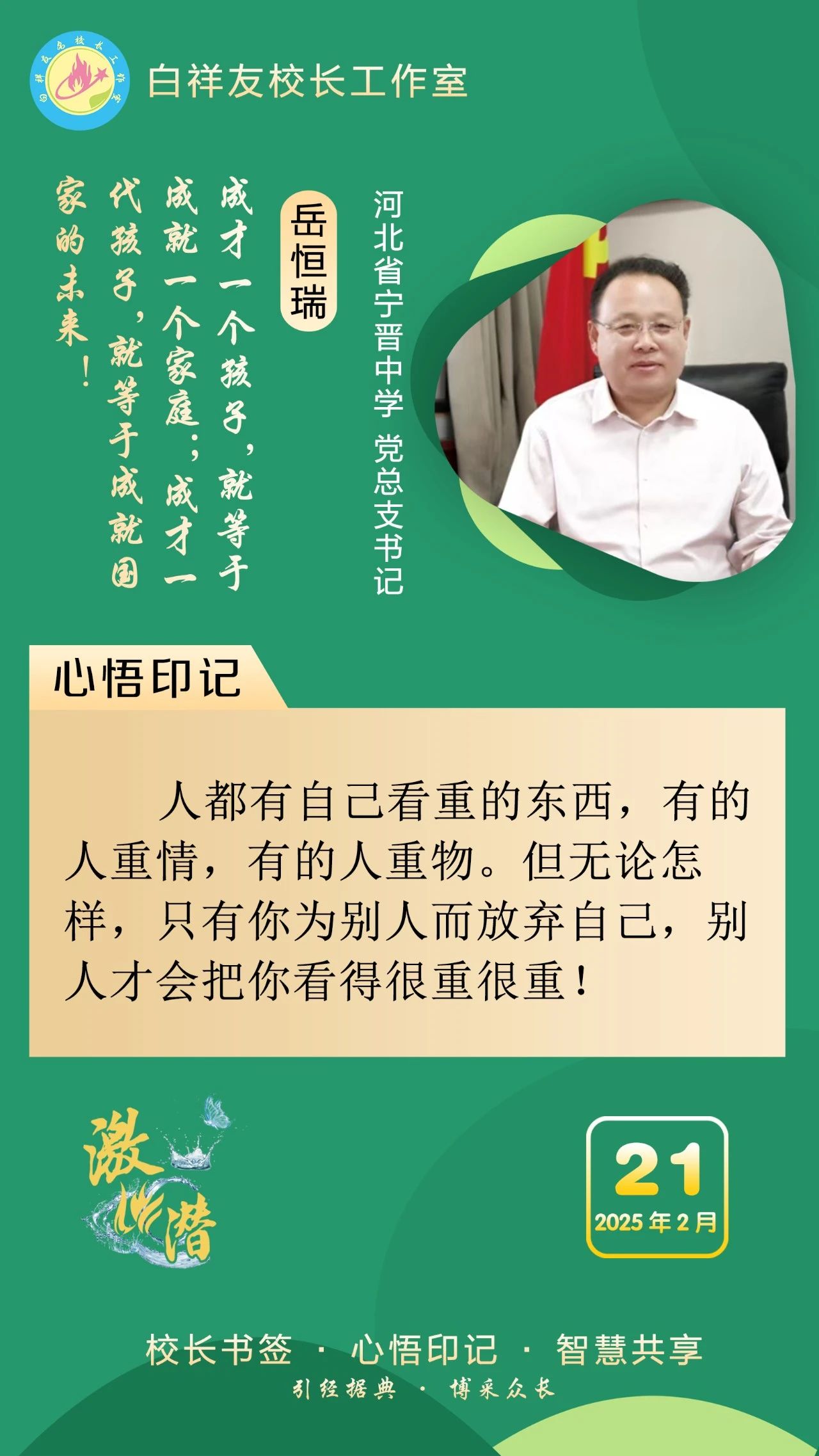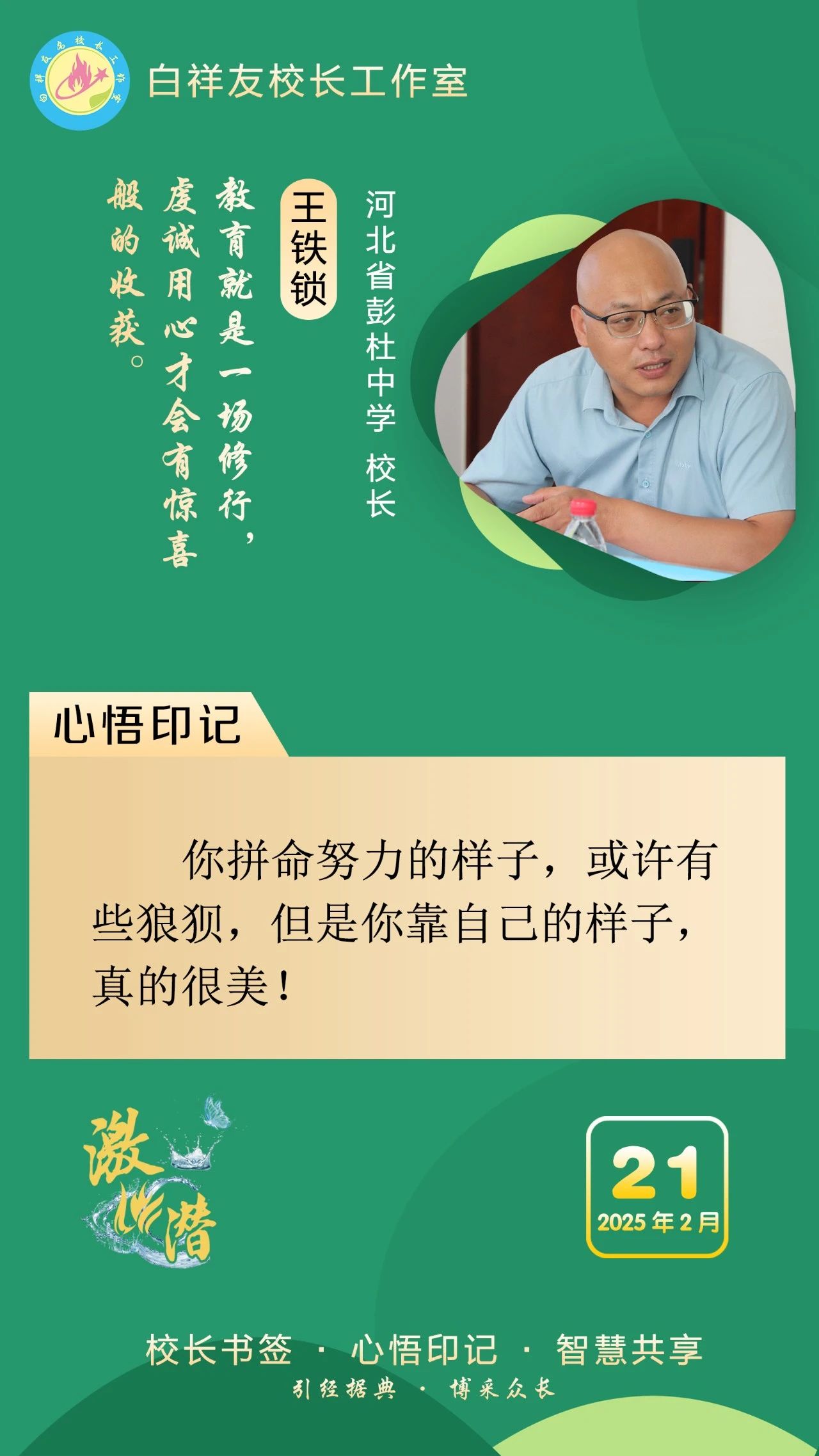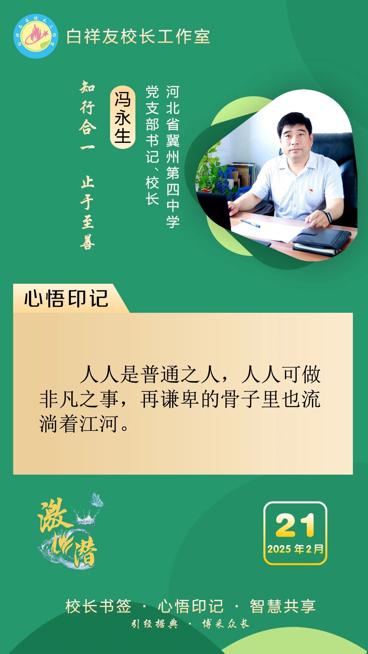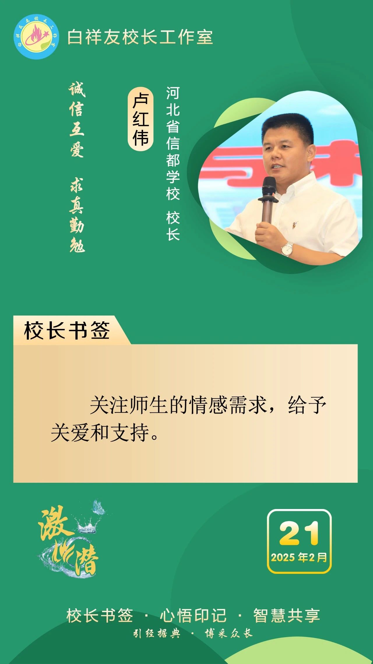 “白祥友校長(zhǎng)工作室”成立于2019年4月,是教育部“國(guó)培計(jì)劃”中小學(xué)名校長(zhǎng)領(lǐng)航工程、河北省首批名校長(zhǎng)工作室,目前省內(nèi)外成員校56個(gè)。工作室堅(jiān)持“資源共享、智慧共融、互助共贏”理念,已成為思想碰撞的交流場(chǎng),資源共享的品牌站,成果展示的輻射源。