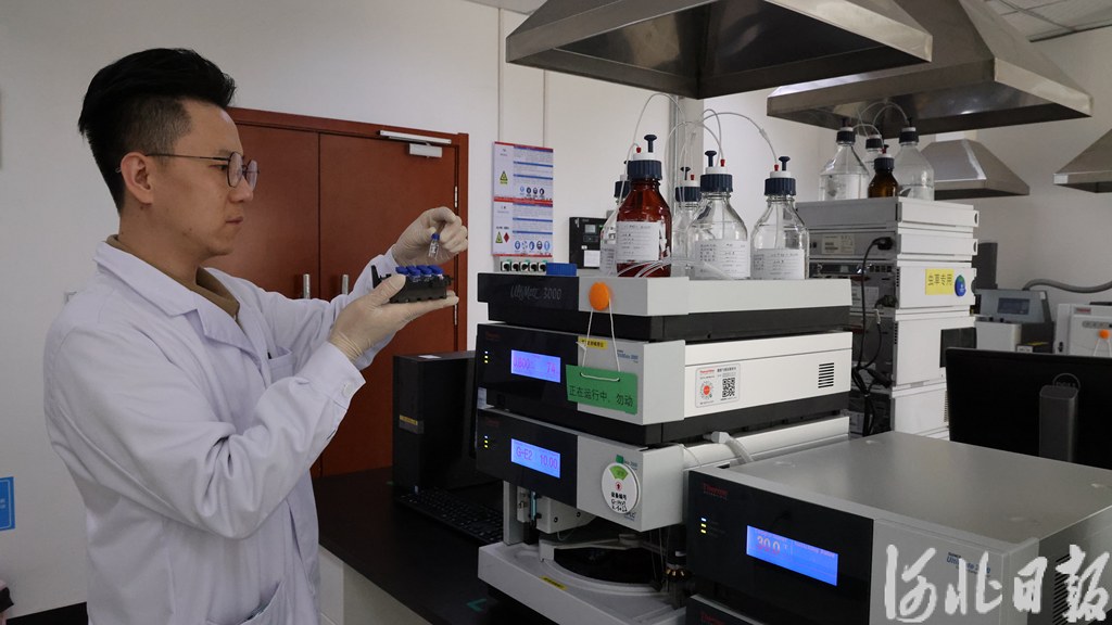 2月19日,在位于京津冀·生物醫(yī)藥產(chǎn)業(yè)園的北京協(xié)和藥廠有限公司滄州分公司,工人正在對原料藥產(chǎn)品進行檢測。河北日報記者戴紹志攝