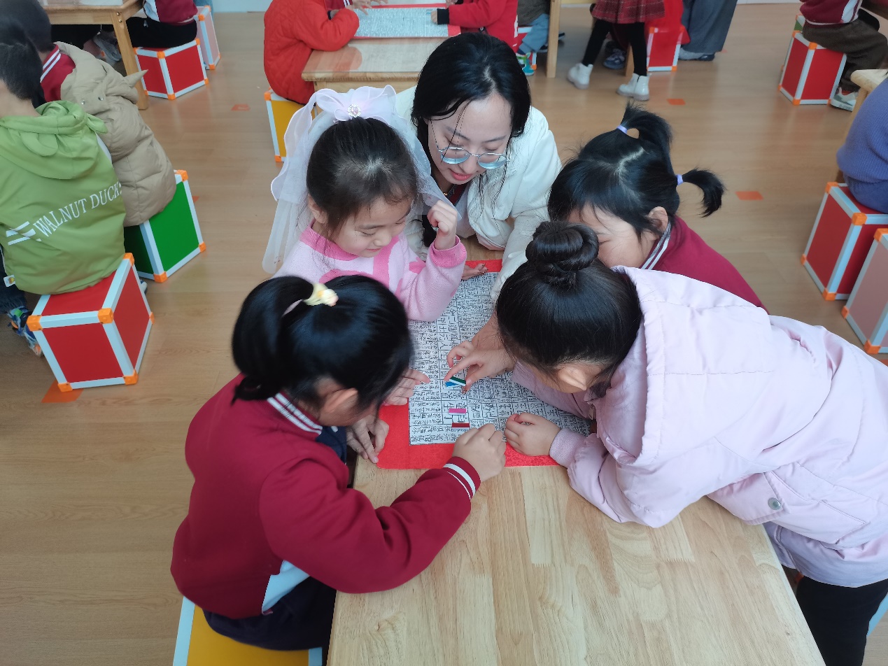 最后,“升官圖大冒險”將活動推向高潮。孩子們化身古代文人雅士,在特制卷軸地圖上展開智慧角逐。大家分組圍坐在“升官圖”前,通過擲骰子、闖關答題等環節,按照規則在圖上前進,體驗古代傳統游戲的樂趣。他們時而為前進幾步歡呼,時而因意外“后退”而嘆氣,在游戲中學會遵守規則、體驗競爭與合作,感受傳統游戲的獨特魅力。