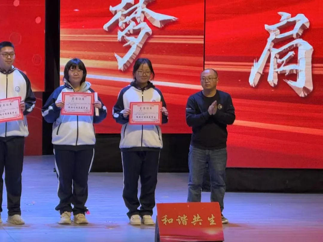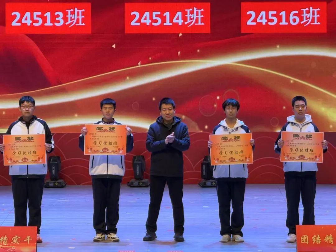 大會為近期表現(xiàn)優(yōu)異的學生、班級進行頒獎,極大地鼓舞了同學們的士氣。會上,優(yōu)秀學生代表王一恒同學發(fā)言。他從堅持、重視基礎、制定詳細的計劃、及時整理復習、注重勞逸結(jié)合四方面分享了自己學習經(jīng)驗。