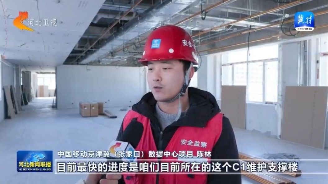 重點項目"爭春早" 。我現在是在中國移動京津冀(張家口)數據中心項目的建設現場 ,現在呢這里的工人們正在克服低溫、大風等不利因素的影響,加緊施工,確保工程如期完成。
