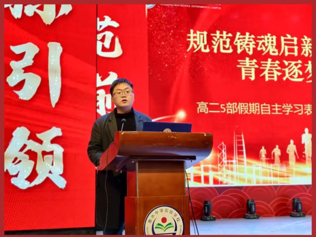 高二5部年級(jí)主任張博作總結(jié)指導(dǎo),他以“從優(yōu)秀走向卓越”為主題,結(jié)合年級(jí)發(fā)展目標(biāo)和同學(xué)們的成長(zhǎng)需求,為全體師生指明了努力的方向。