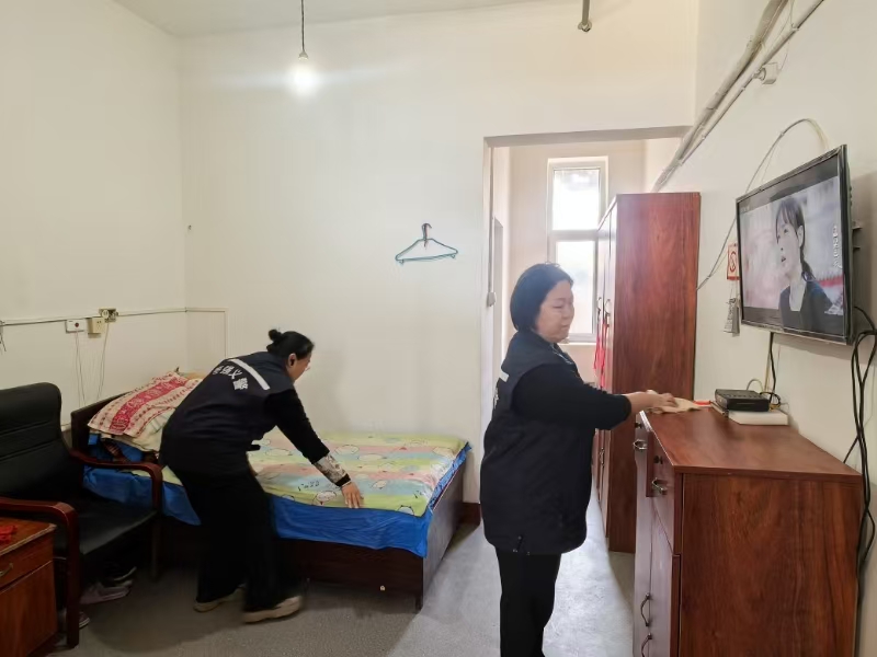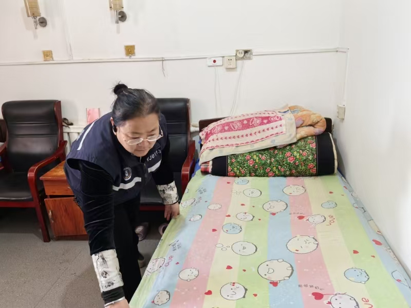 演出結束,義警隊員們?yōu)槔先藗兇驋叻块g、整理床鋪,并與他們親切交談,傾聽他們講述過往的奮斗歷程,感受、學習他們舍小家為大家的無私情懷,了解他們的生活狀況和需求。義警們?yōu)槔先藗兯蜕暇臏蕚涞乃⌒〉乃休d著深深的敬意,傳遞著社會的關懷與溫暖。老人們的臉上洋溢著幸福的笑容,紛紛對義警隊員們的愛心舉動點“贊”致謝。
