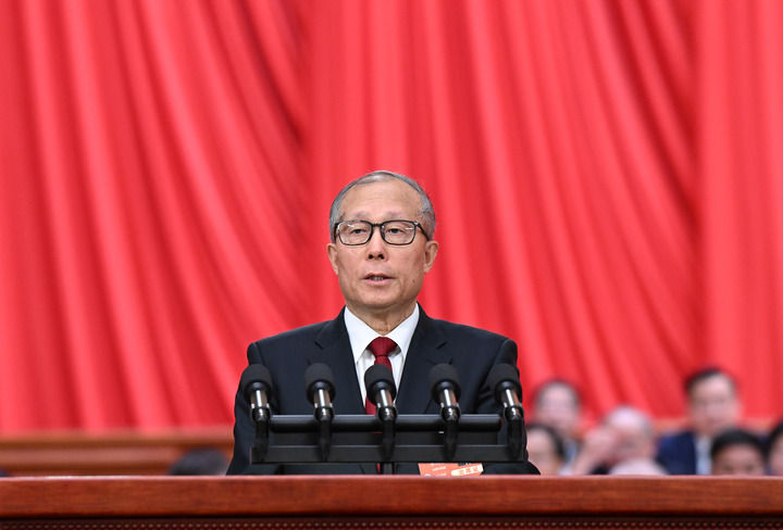 3月5日上午,第十四屆全國人民代表大會第三次會議在北京人民大會堂開幕。受全國人大常委會委托,全國人大常委會副委員長李鴻忠作關于全國人民代表大會和地方各級人民代表大會代表法修正草案的說明。新華社記者 張領 攝