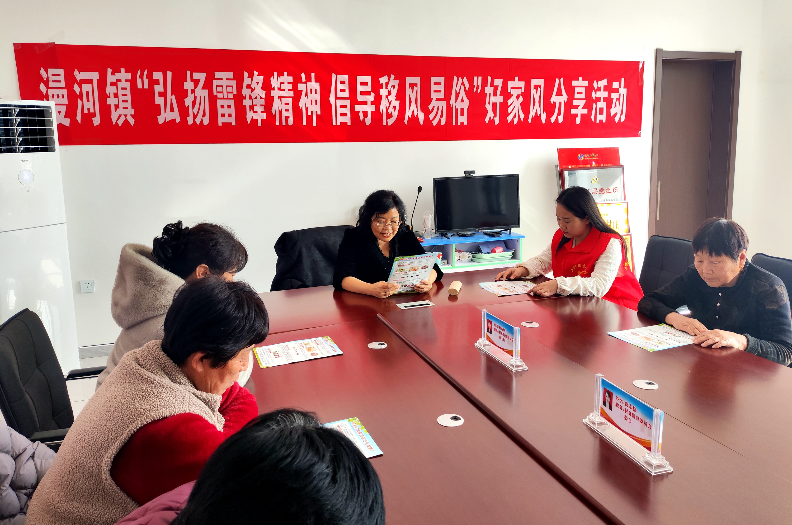 好家風分享會上,漫河鎮志愿者發移風易俗宣傳頁。漫河村婦女主任倪志穩結合事例,講解移風易俗及婚俗改革意義。五好家庭代表分享孝敬老人、教育子女點滴,質樸話語贏得掌聲。漫河鎮表示,將以活動為契機,開展更多貼心服務,讓文明實踐落地見效。