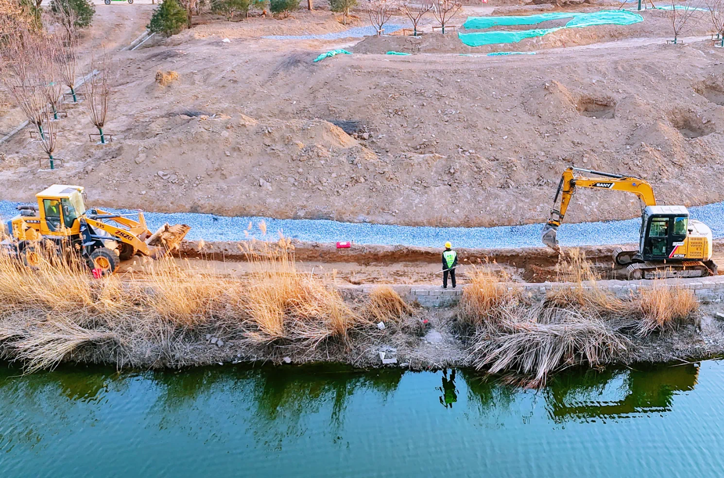 滏陽河市區(qū)段干馬橋至大慶路橋段生態(tài)河道治理工程全長(zhǎng)約 5.6 公里,項(xiàng)目?jī)?nèi)容主要包括河岸海綿化治理、排水口整治、路面改造、綠化提升,以及驛站、照明等配套便民設(shè)施建設(shè),待工程建成后,可有力提升沿河城區(qū)雨水收集利用水平,增強(qiáng)城市的彈性和韌性,改善人居環(huán)境,加快城市更新。今年開春以來,施工方搶抓春季施工的黃金期,在保證安全和質(zhì)量的前提下,加快工程建設(shè)進(jìn)度,全力推進(jìn)項(xiàng)目建設(shè)。目前,雨水公園、海綿科普?qǐng)@、驛站等節(jié)點(diǎn)工程正加速推進(jìn),河岸清表工作已基本完成,親水步道綠樹種植工作有序推進(jìn)。