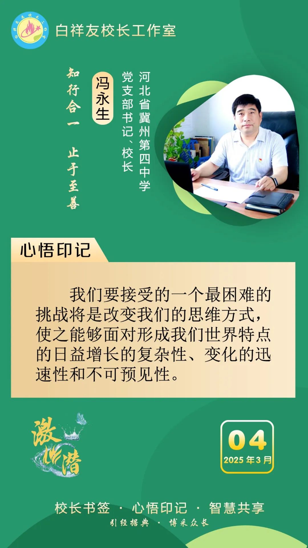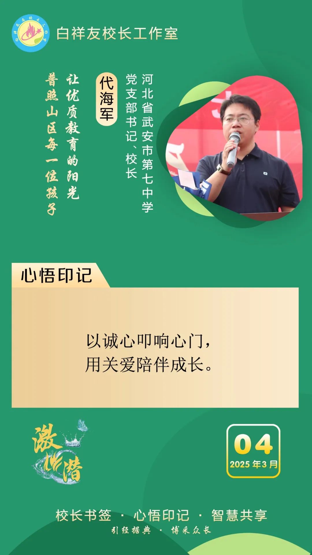 “白祥友校長工作室”成立于2019年4月,是教育部“國培計劃”中小學名校長領航工程、河北省首批名校長工作室,目前省內外成員校56個。工作室堅持“資源共享、智慧共融、互助共贏”理念,已成為思想碰撞的交流場,資源共享的品牌站,成果展示的輻射源。
