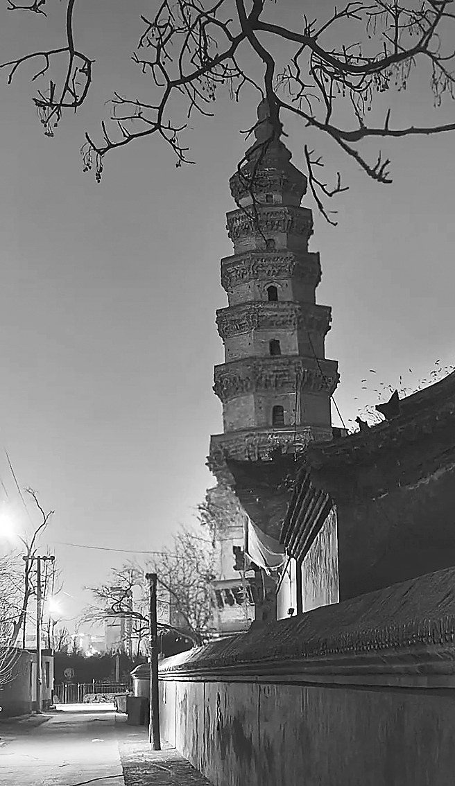 夜色如墨,繁星戳出光亮,銀河正從塔剎的寶珠淌過。附近公園傳來一陣悠揚的笛聲。在這寂靜的春夜,笛聲顯得格外空靈。