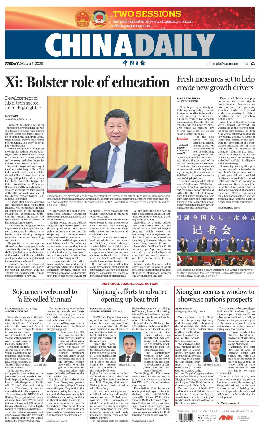 《中國日報》推出“中國式現代化的地方實踐” (National Vision, Local Action)高端訪談欄目,講述中國式現代化建設道路上的地方特色實踐。近日,記者專訪了全國人大代表,河北省政協主席,省委常委,雄安新區黨工委書記、管委會主任張國華,詳細解讀雄安新區建設妙不可言、心向往之的高水平社會主義現代化城市實踐。3月7日,頭版刊發專訪文章,在海內外引起廣泛關注。