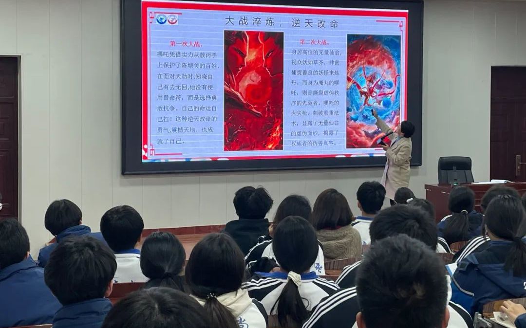 隨后,張老師圍繞哪吒的成長經歷,深刻剖析了哪吒精神的豐富內涵,如不屈從于命運、勇于抗爭、保持善良真誠等崇高品質。她從“撕掉標簽”、融入集體生活以及設定學習目標三個維度,對哪吒的成長密碼進行了深入淺出的解讀。