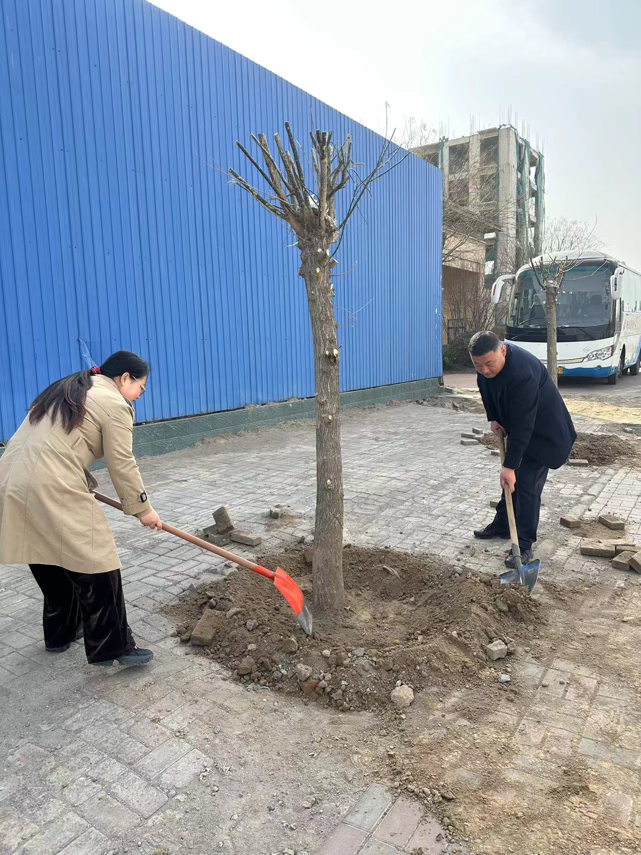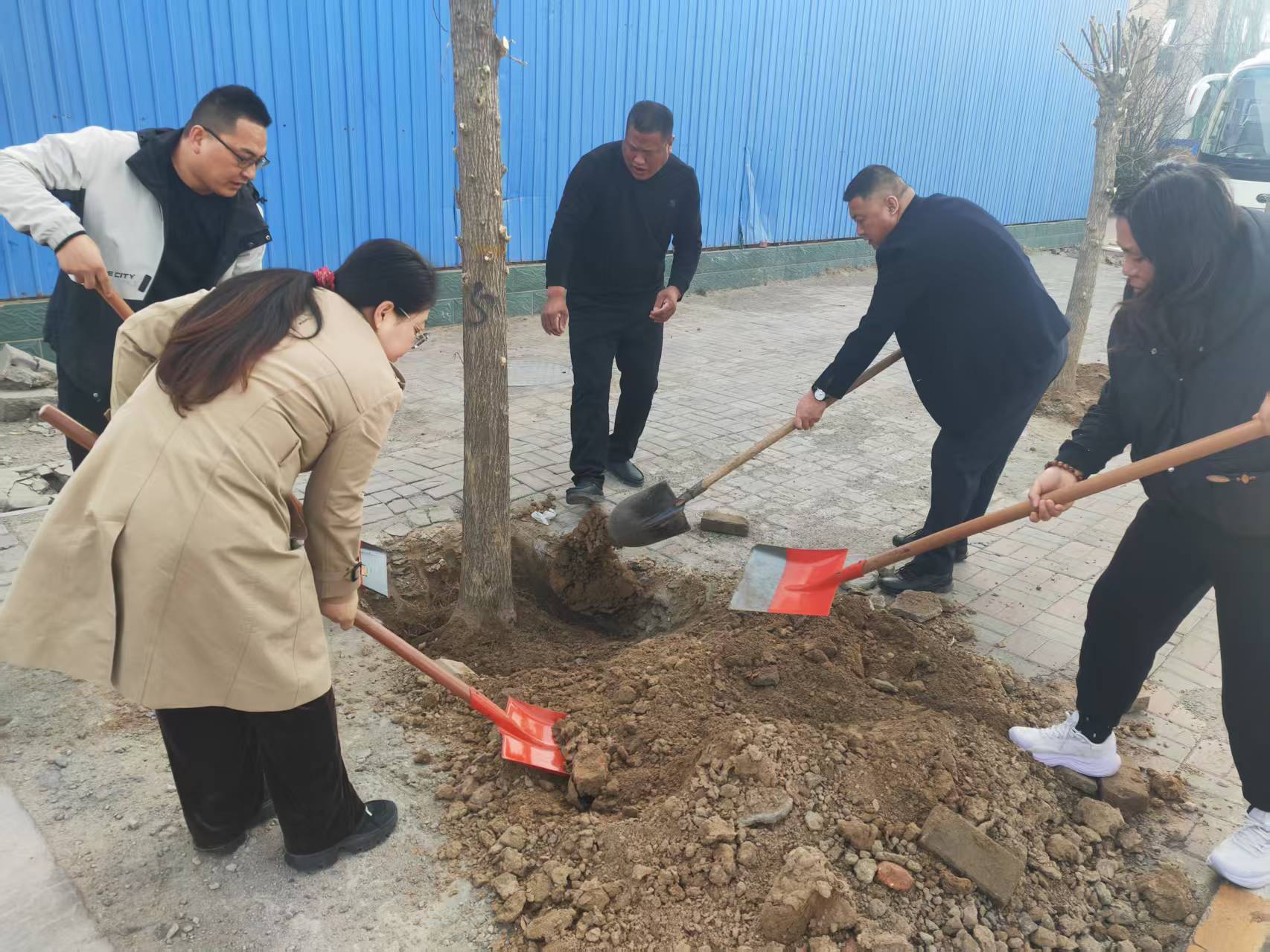 國省干道兩側植樹現場一片火熱,大家熱情高漲、干勁十足,揮鍬鏟土、扶苗填坑、提桶澆水,分工協作。經過一上午的辛勤勞作,200余株景觀槐樹迎風挺立,煥發出盎然春意。