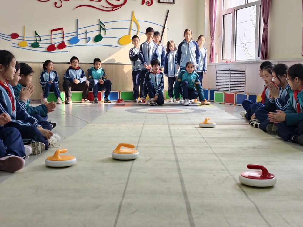 衡水市永興路小學學生在進行陸地冰壺比賽。新華社發(fā)(楊雯 攝)