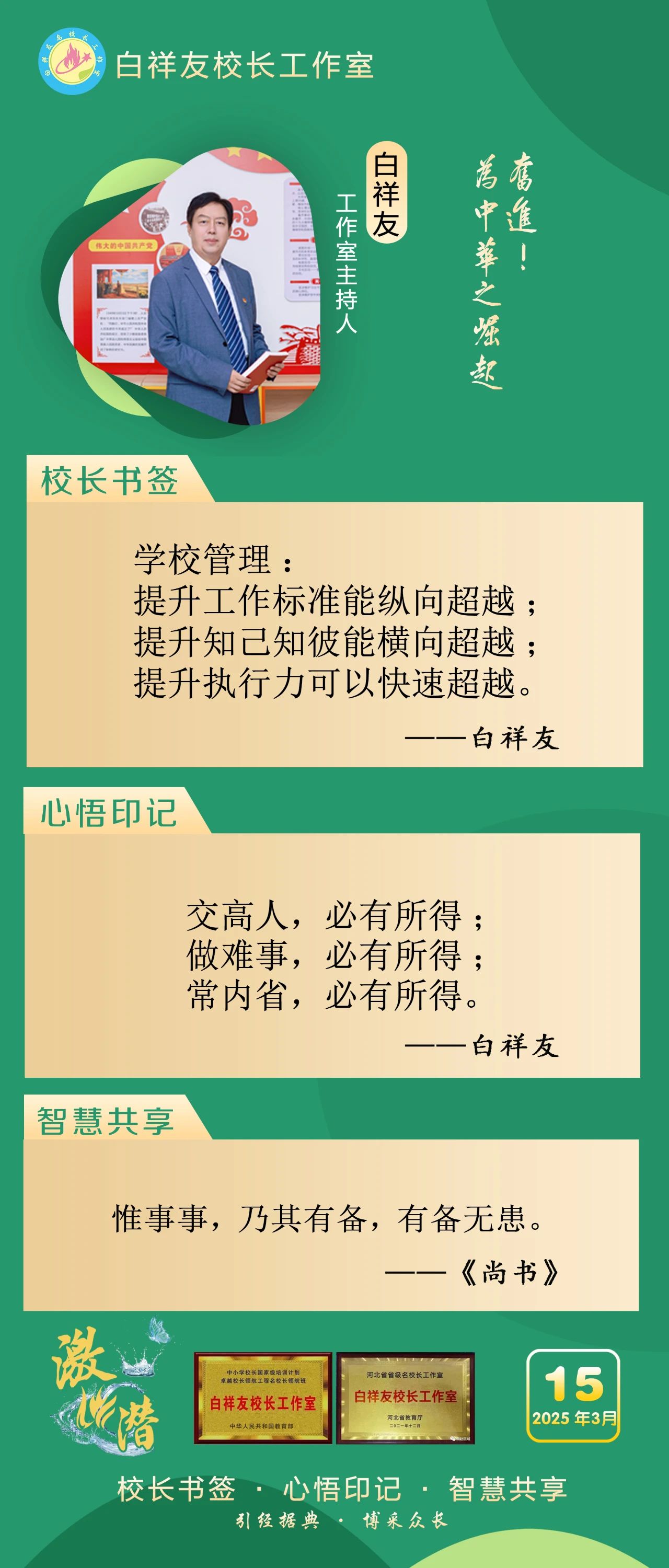 “白祥友校長工作室”成立于2019年4月,是教育部“國培計劃”中小學名校長領航工程、河北省首批名校長工作室,目前省內(nèi)外成員校56個。工作室堅持“資源共享、智慧共融、互助共贏”理念,已成為思想碰撞的交流場,資源共享的品牌站,成果展示的輻射源。