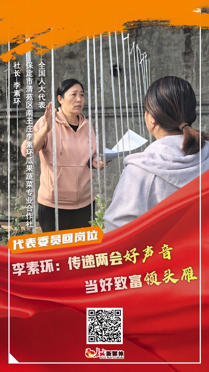 “土地承包到期后再延長30年試點范圍又擴大了……”“還有一個好政策,就是咱們60歲以上的農(nóng)民,養(yǎng)老金又漲了20塊錢……”3月13日下午,全國人大代表、保定市清苑區(qū)東閭鎮(zhèn)南王莊李素環(huán)瓜果蔬菜專業(yè)合作社社長李素環(huán)向村民們傳達有關(guān)“三農(nóng)”的好消息。