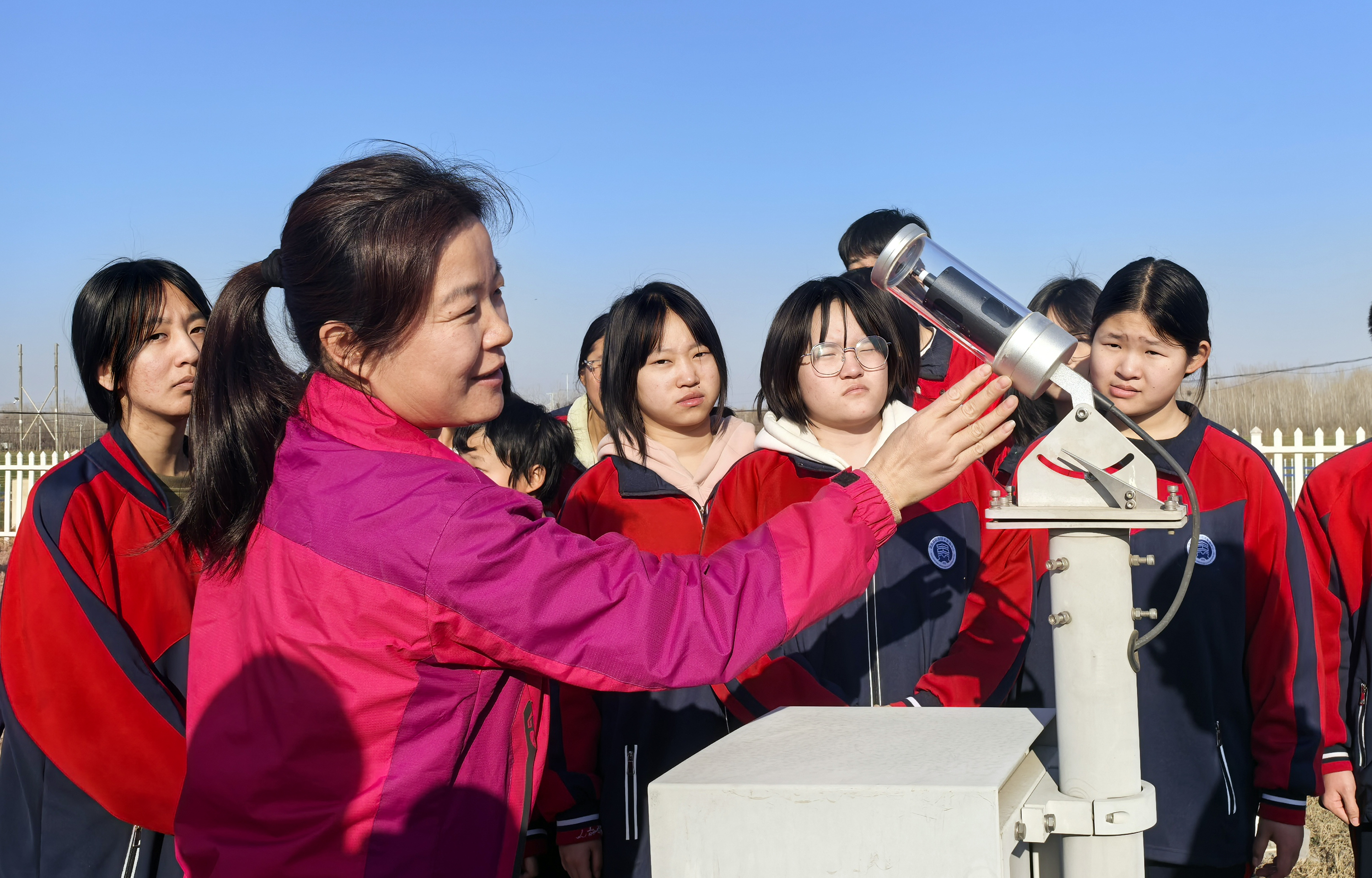 步入氣象觀測場,學生們仿佛闖入了一座充滿科技魅力的“氣象大觀園”。場地上,各類精密的氣象觀測儀器錯落有致。風向標宛如靈動的舞者,隨風輕盈旋轉,氣象局工作人員化身知識使者,細致解讀風向指示的精妙原理。學生們圍聚其身旁,一面專注聆聽,一面奮筆疾書,生怕錯過任何細節。從精準度量氣壓的氣壓計,到忠實收集雨量的雨量筒,每一臺設備都似一把神奇的鑰匙,解鎖一扇通往氣象知識寶庫的大門,學生們親眼見證氣象數據采集的第一現場,問題如連珠炮般拋出,眼眸中閃爍的是對氣象知識熾熱的渴望之光。