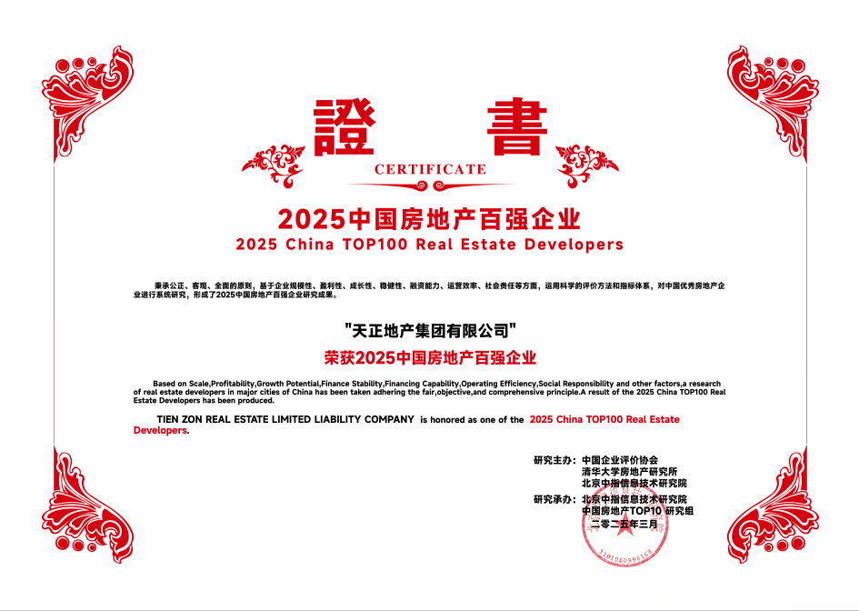 衡水天正地產集團憑借其在經營管理、財務規劃、產品交付等領域的持續鞏固,展現出強大的市場競爭力和良好的發展態勢,再次榮膺“2025中國房地產百強企業”稱號,并首度榮獲“2025中國房地產百強之星”榮譽。