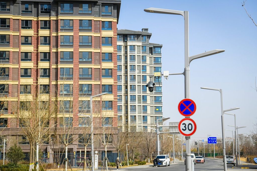 2025年3月13日拍攝的雄安新區容東片區內的智慧燈桿。智慧燈桿將支持雄安新區打造綠色智能交通模式,賦能雄安智能交通建設。(新華社資料片)