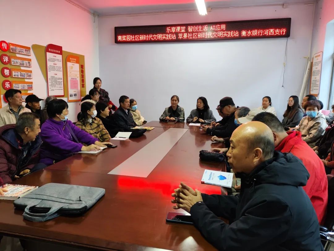 這場培訓,是“樂享課堂·智創生活”系列公益講座的第一課,由萃景社區新時代文明實踐站、南菜園社區新時代文明實踐站攜手衡水銀行共同舉辦,旨在提升社區居民數字素養,拓寬就業創業思路,豐富老年人晚年生活。