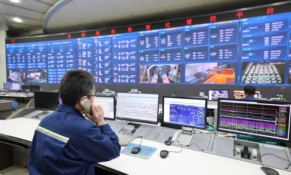 記者在位于河北省遷安市的首鋼遷鋼公司調度指揮中心看到,巨大的主控屏幕上各類數據不停滾動,工作人員在各自機位上協同對廠區超過60個生產工序進行數字化管控。