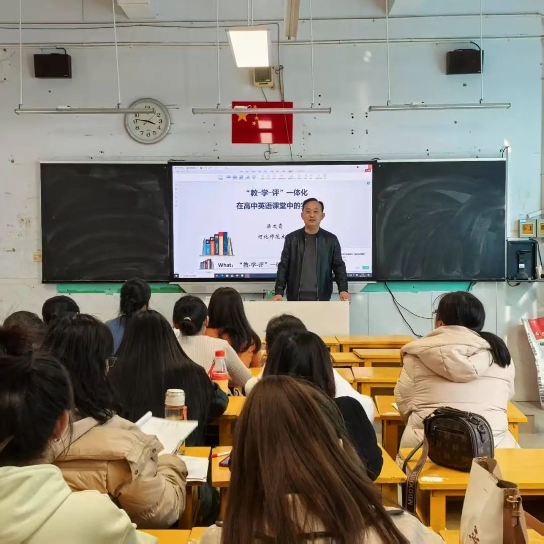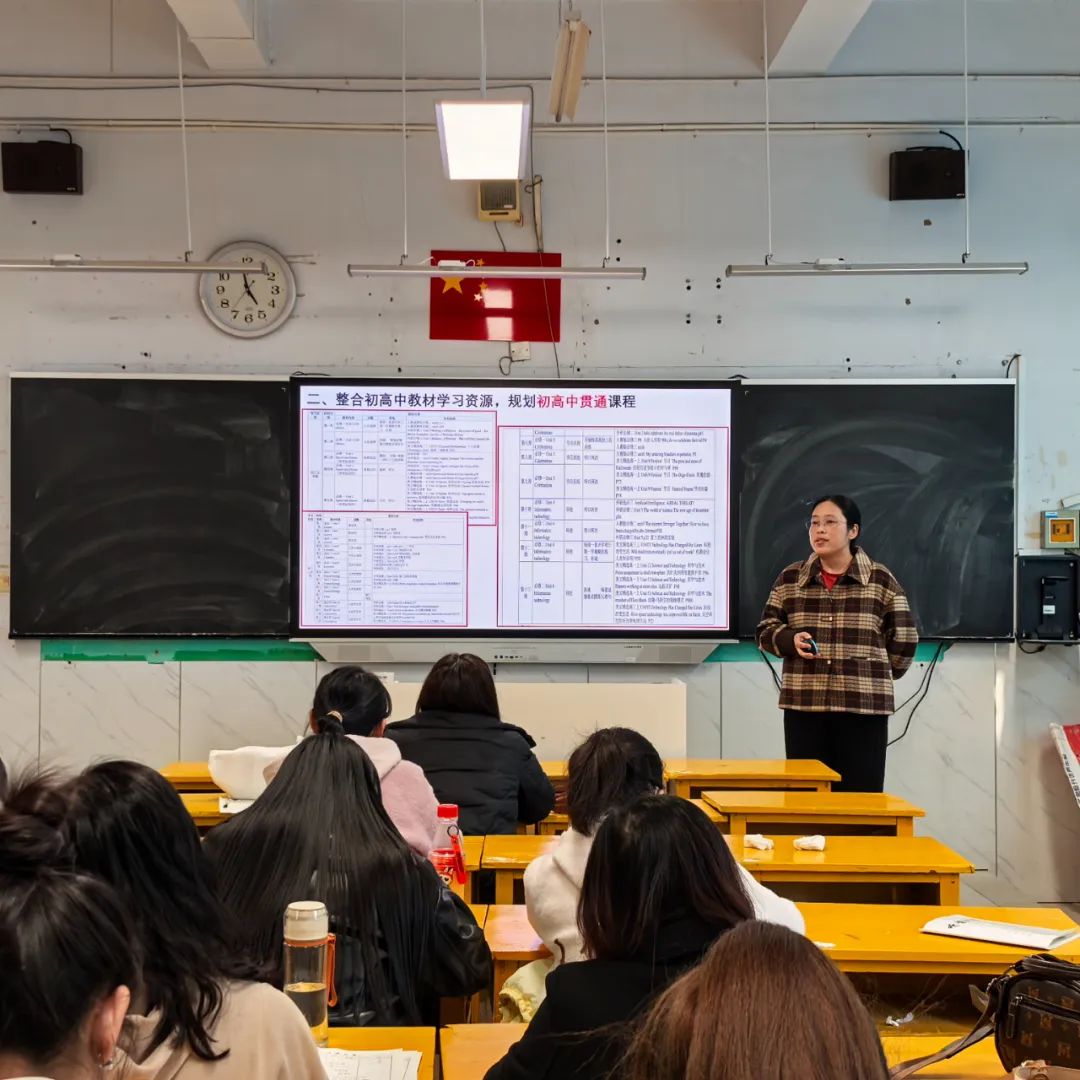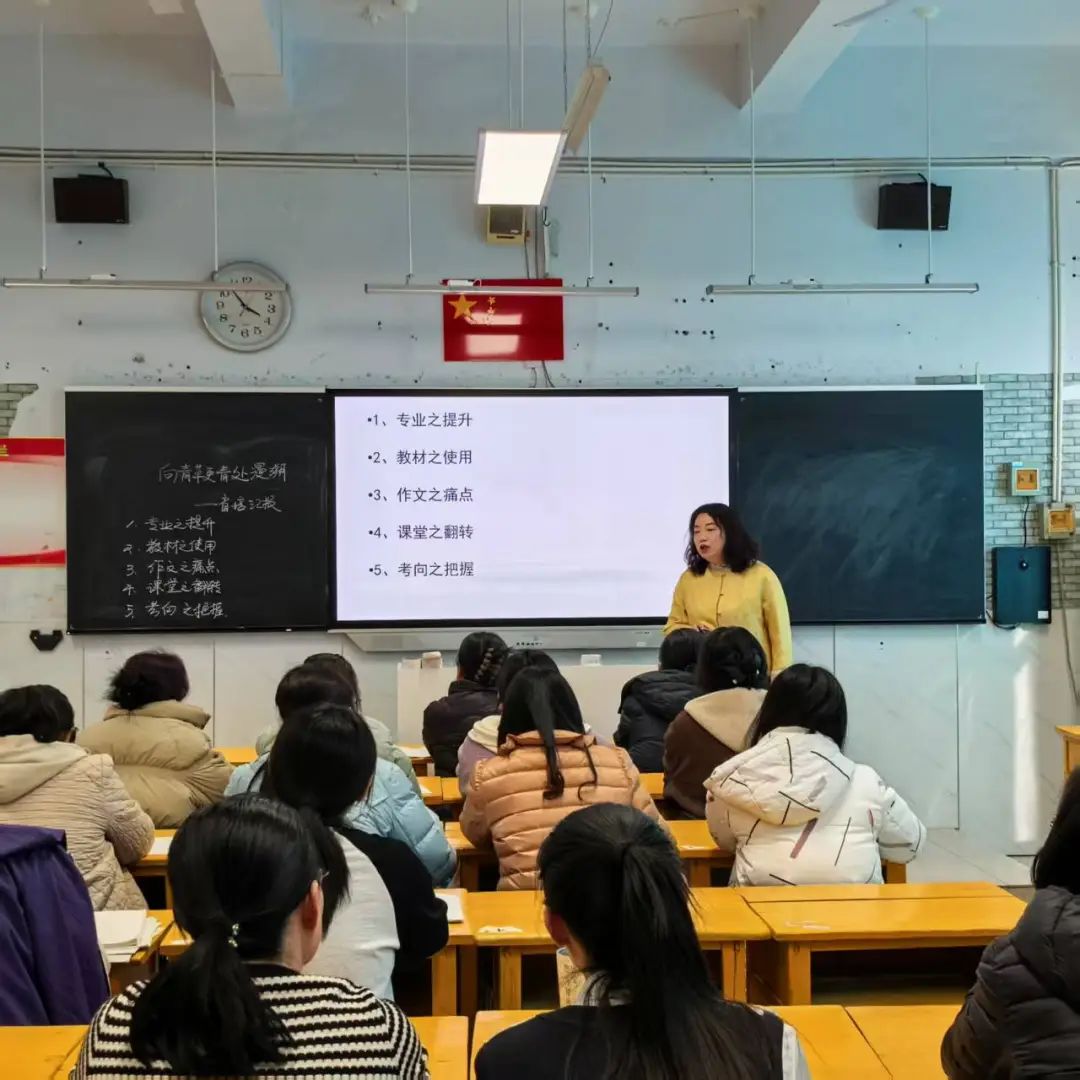 活動中,語文教師陳超風以《向青草更青處漫溯》為題,從專業之提升、教材之使用、作文之痛點、課堂之翻轉、考向之把握五方面為大家進行了經驗分享;數學教師杜翠霞以《努力始終在路上,向名師靠近》為題,從回歸課標重視教材、核心素養指向的課程改革、高三數學復習的誤區與對策、如何成為一名優秀的教師四個方面為大家進行了經驗分享;英語教師王鑫以《培訓促成長,賦能續新篇》為題,從“教-學-評”一體化在高中英語課堂中的實施、高中英語大單元整體教學設計、AI賦能高中英語教學三方面為大家進行了經驗分享;英語教師曲翠紅以《研訓啟思新幕,精培賦能征程》為題,從如何認識英語“教-學-評”一致性關系、單元整體教學視域下的高中英語教學設計理念與實踐探究、英語學科課程規劃與實施、高中英語聽說課課程體系的構建與實施四方面為大家進行了經驗分享。