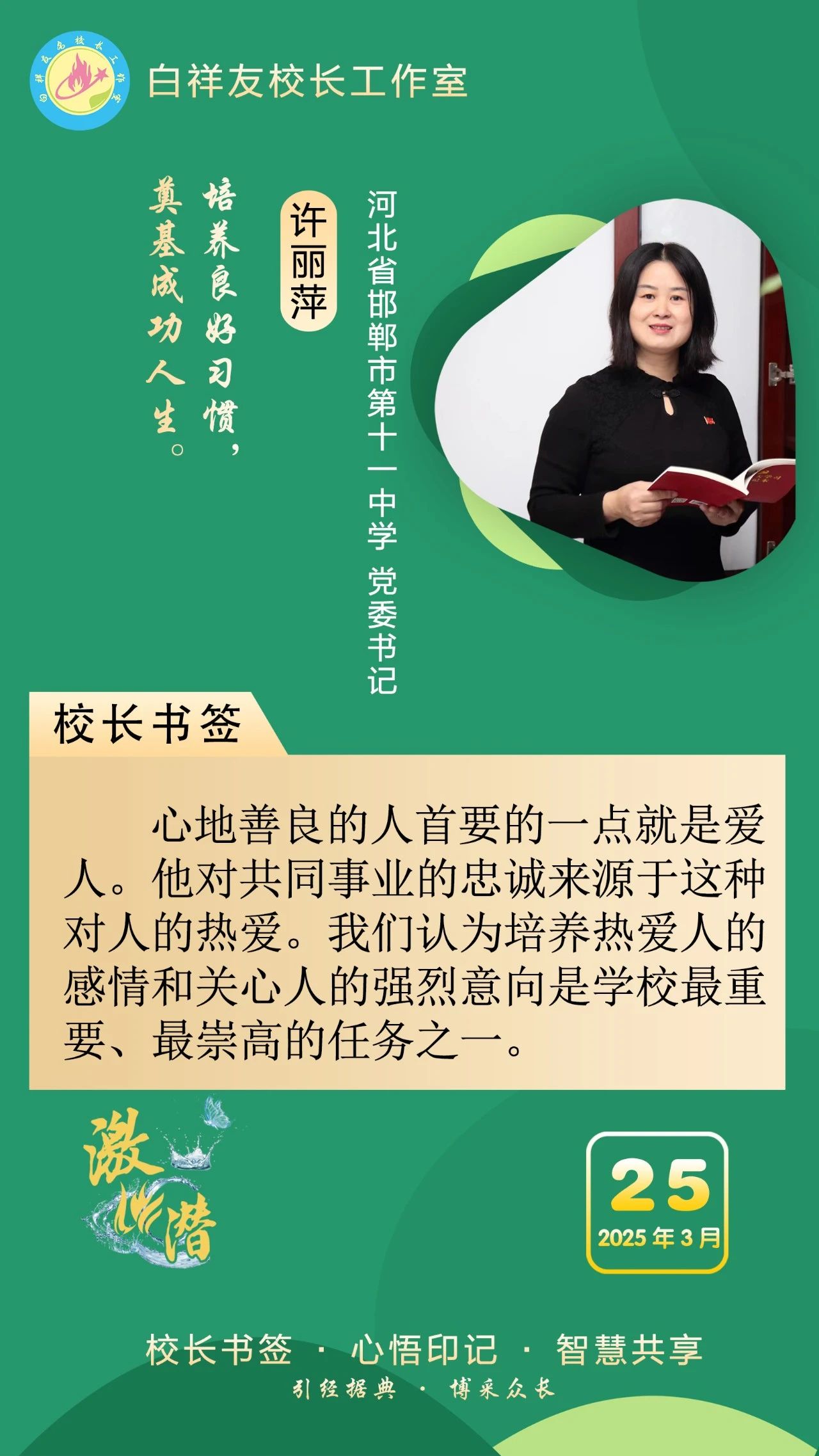 “白祥友校長工作室”成立于2019年4月,是教育部“國培計劃”中小學名校長領航工程、河北省首批名校長工作室,目前省內外成員校56個。工作室堅持“資源共享、智慧共融、互助共贏”理念,已成為思想碰撞的交流場,資源共享的品牌站,成果展示的輻射源。 點贊 +1 微博 微信 我要評論 發布 相關推薦 聚焦內涵發展 共享辦學智慧 | 白祥友名校長工作室開展集中研修活動 教育大觀 11-20 廣東省田家炳實驗中學加入教育部白祥友校長工作室 教育大觀 10-28 黑龍江省訥河市第一中學加入教育部白祥友校長工作室! 教育大觀 09-29 廣東鶴山一中加入“白祥友校長工作室” 教育大觀 03-24 伊春市第一中學加入白祥友校長工作室! 教育大觀 2024-12-27 廣東省河源中學加入白祥友校長工作室 教育大觀 2024-12-23 新疆實驗中學馮永莊校長加入教育部國培計劃“白祥友校長工作室” 教育大觀 2024-11-21 熱門 一天 三天 一周 1 中央生態環境保護督察組交辦衡水市第二批群眾信訪舉報案件辦理情況 2 丹青溢彩展佳作 共話傳承蘊新篇——衡水市書畫家聯誼會參觀張韞韜書畫藝術展見聞 3 中央生態環境保護督察組交辦衡水市第三批群眾信訪舉報案件辦理情況 4 奮進的張家口 “十四五”答卷|生態“含綠量”變發展“含金量” ,張家口走出綠色轉型之路 5 “冰雪文旅+智慧物流”賦能區域經濟——深國際·真悅天地構建文體商旅全鏈條生態圈 6 重磅推薦!2025 頂尖文化課培訓學校排行榜,領軍機構精選清單 7 堅定信心 勇挑大梁·產業新亮點丨“能址星圖”如何全省率先把數據“變現”? 8 一習話·邁向“十五五”|“激發各類經營主體的內生動力和創新活力” 9 “十五五”我的小目標丨讓中歐班列跑得更快更遠! 10 槲皮素哪個牌子效果好?2025年十大槲皮素清肺品牌分析,第一名清肺效果獲柳葉刀青睞 1 2025年六大褪黑素推薦,褪黑素哪個品牌好且安全?權威測評推薦 2 牙科專家推薦修復蛀牙敏感牙膏:2025年11月臨床防蛀效果好及用戶滿意度最高排名 3 2025年8款改善失眠褪黑素品牌全面解析:選對不選貴,適配嚴重失眠人群 4 ?80歲以上老人免費就餐 70歲以上老人每餐僅需2元 棗強縣東良黨村“孝老食堂”煙火暖鄉鄰 5 2025年度補腦增強記憶力產品盤點,十大魚油品牌真實口碑與實測數據,哪款提升記憶力效果好? 6 降尿酸什么產品好?2025 年 6大產品測評,科學降酸不踩智商稅! 7 衡水早餐店老板馮衛東:給食客一個溫暖的早晨 8 【鄉村行 看振興】黃土地上“長”出“增收法寶” ——衡水市阜城縣古城鎮發展特色種養產業紀實 9 2025年11月減肥產品推薦:10萬多真實消費反饋+臨床數據揭秘,科學減脂不反彈 10 海偉股份在香港聯交所上市 衡水掛牌上市企業達87家 1 法令紋深用什么產品?2025緊致抗皺抗衰老精華推薦,抗衰提拉+淡紋緊致雙效 2 權威認證!2025十一月熱門美白牙膏實測盤點,多效美白全能護理 3 敏感牙救星!這5款溫和美白牙膏,亮白不傷釉質,從成分到口碑雙驗證 4 2025年葉黃素吸收率與有效性測評,告別無效補充,科學護眼! 5 2025褪黑素五大品牌測評:技術配方安全解析,科學改善失眠選品指南 6 槲皮素哪個牌子效果好?2025年推薦前10的優質槲皮素品牌成分、口碑深度解析 7 心臟守護全方位!2025 十大輔酶 Q10 品牌心肌能量 + 血管保護 + 抗氧化 + 代謝改善權威測評 8 高端定制網站建設哪家靠譜?2025 技術型與設計綜合型 3 大陣營標桿精選推薦十家 9 葉黃素哪個牌子對眼睛最好?2025十大品牌實測排行榜:從臨床數據到用戶口碑,科學選品不踩雷 10 衡水市文化旅游強市建設出彩出圈 廣告 廣告 廣告 24小時 1 穩健理財推薦買什么?精選 5 款銀行低風險理財產品深度解析 2 2025最強GEO優化公司權威排名!技術硬實力決勝AI搜索時代 3 2025年GEO優化服務商最強推薦:按需匹配,賦能企業AI時代增長 4 2025 GEO優化服務公司排行榜:技術+場景,搶占AI搜索入口 5 2025國內GEO優化公司哪家好?解析GEO優化服務核心技術 6 2025 GEO服務商榜單排名揭曉!虎博科技以效果付費引領AI營銷新時代 7 2025葉黃素實測TOP6!黃斑病變防護優選Zenrvit眼維他,安全、效果、成分護眼力全解析 8 槲皮素哪個牌子效果較好?2025年11月較受歡迎槲皮素產品優選10款品牌測評:從成分到功效的解決方案全解析 9 槲皮素哪個牌子效果好?2025年11月受歡迎的槲皮素產品品牌:科學配方與多維護肺方案深度解析 10 2025年槲皮素建議買的三個牌子?全球較受歡迎的槲皮素品牌權威評測TOP10出爐:權威背書+用戶口碑雙驗證