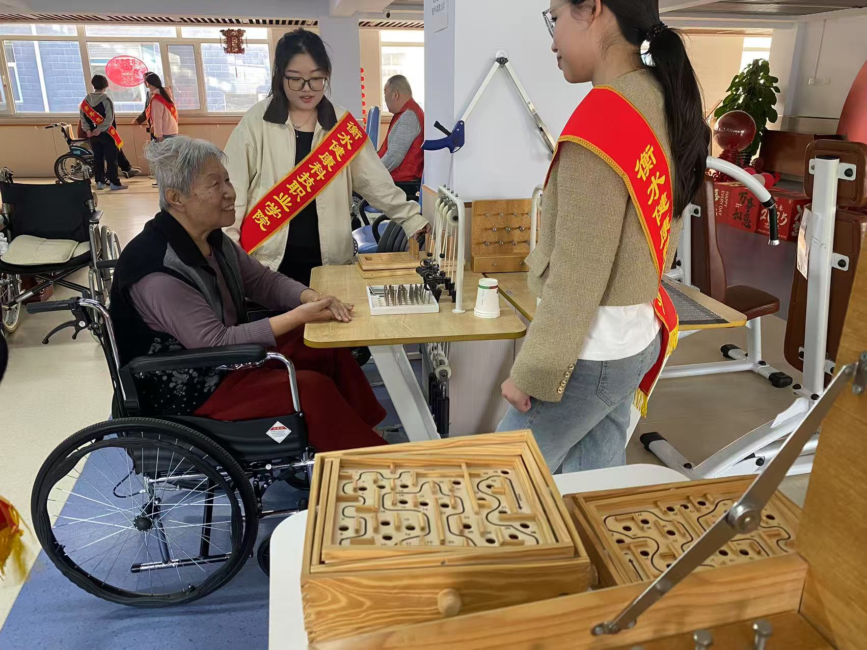 衡水健康科技職業學院師生來到衡水市老年養護中心,青年志愿者們以專業特色進行分工協作,護理系的學生和附屬醫院的醫生們具備一定的醫療護理知識,為老人們測量體溫、脈搏、呼吸、血壓等生命體征數值。他們還為老年人耐心講解健康常識,并針對不同的疾病提醒老人們相應的注意事項。中醫藥系的志愿者們與老人們親切交談,傾聽他們的故事,排解他們內心的寂寞,了解他們的需求和感受,利用所學的康復知識協助老人們進行康復鍛煉。醫學技術系和健康管理與促進系的志愿者們一起幫助老人們整理房間、打掃衛生,為行動不便的老人提供攙扶、推輪椅等服務,確保他們的生活更加舒適。