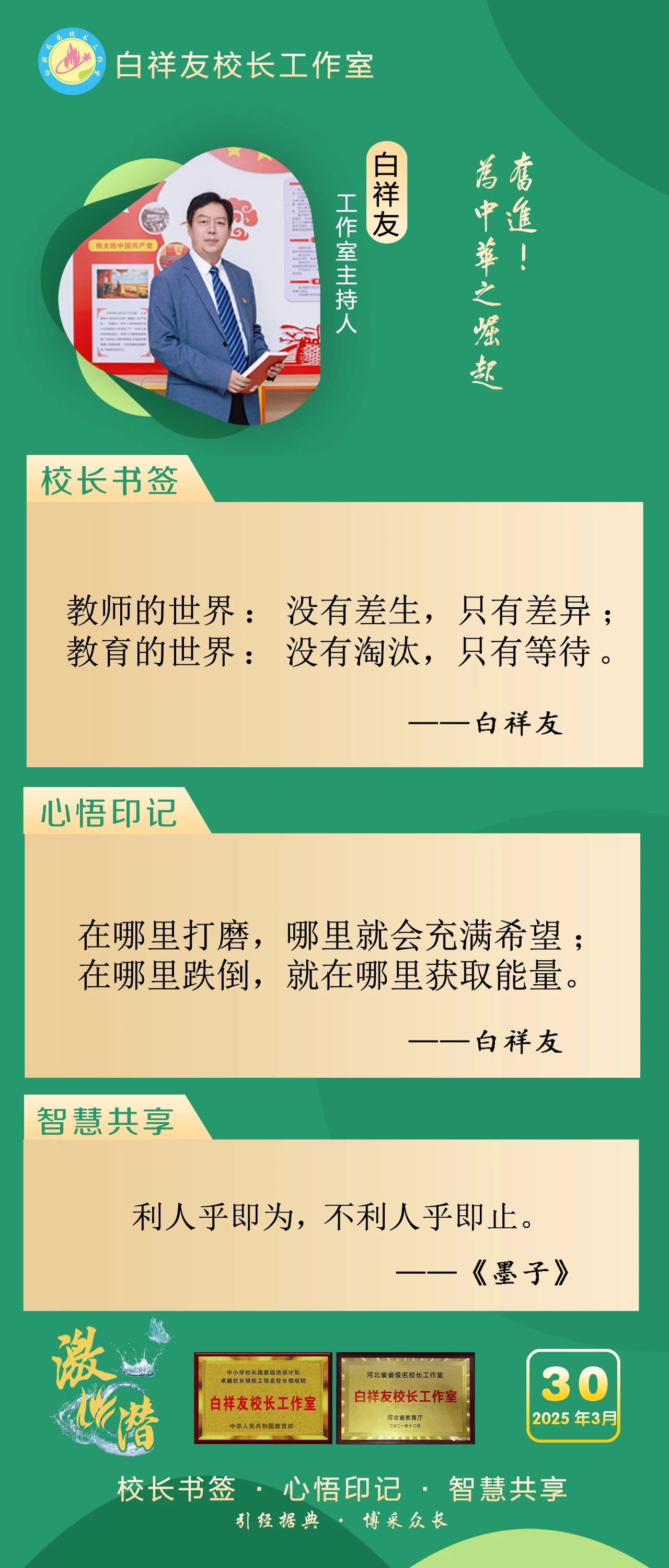 “白祥友校長工作室”成立于2019年4月,是教育部“國培計(jì)劃”中小學(xué)名校長領(lǐng)航工程、河北省首批名校長工作室,目前省內(nèi)外成員校56個(gè)。工作室堅(jiān)持“資源共享、智慧共融、互助共贏”理念,已成為思想碰撞的交流場(chǎng),資源共享的品牌站,成果展示的輻射源。