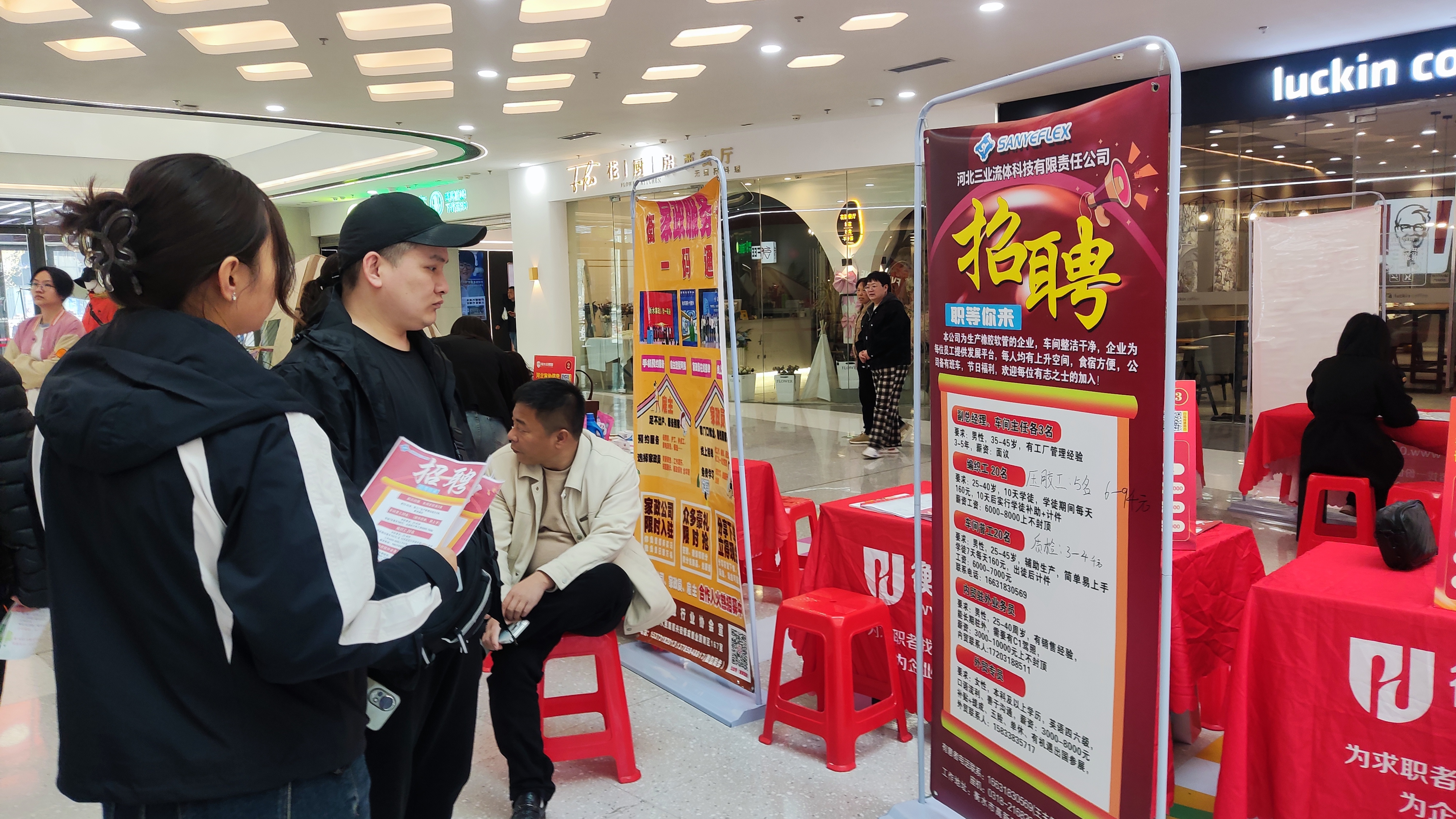3月30日,桃城萬達廣場變身“職場會客廳”,求職者穿梭在各展臺前,尋找著心儀的工作。這場由桃城區人社局主辦、桃城區就業服務中心承辦的“民營企業服務月”招聘盛宴,用120余家企業、734個就業崗位和11家技能培訓機構的現場展演,為求職者鋪就一條“技能+崗位”的星光大道。