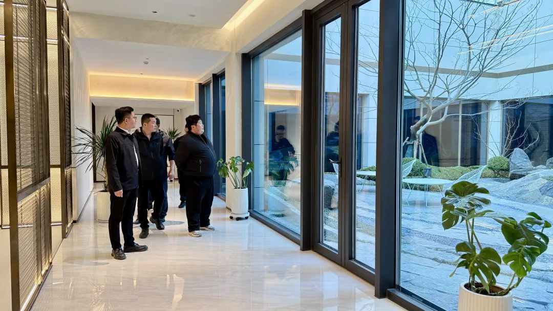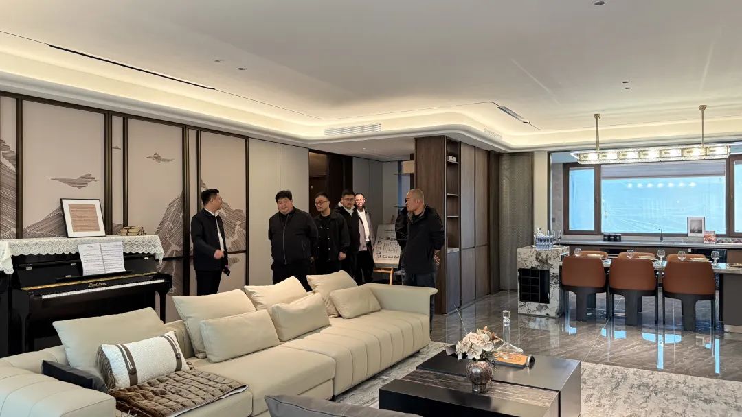 在蘭園工藝樣板房,考察組詳細觀摩了其嚴苛的建造體系。從分戶墻的隔音砂漿墻體到室內三玻兩腔鋁包木窗等超國標工藝,蘭園始終呼應“繁華深處享靜謐”的居住哲學。