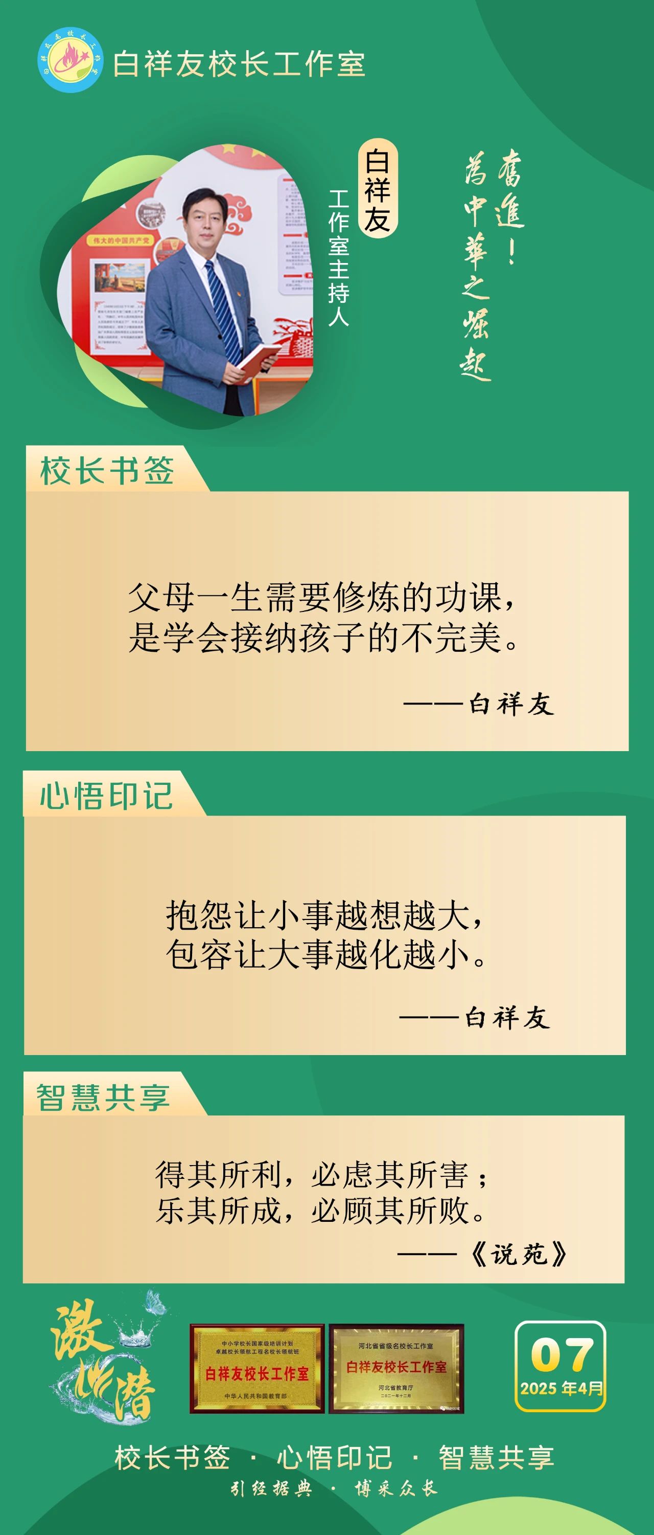 “白祥友校長工作室”成立于2019年4月,是教育部“國培計(jì)劃”中小學(xué)名校長領(lǐng)航工程、河北省首批名校長工作室,目前省內(nèi)外成員校56個。工作室堅(jiān)持“資源共享、智慧共融、互助共贏”理念,已成為思想碰撞的交流場,資源共享的品牌站,成果展示的輻射源。