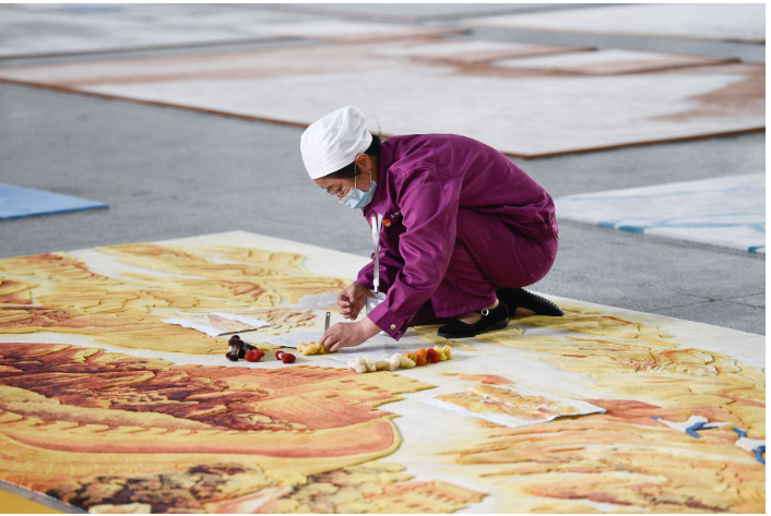 “近年來,公司還為藏毯手工藝從業者、愛好者搭建了手工槍刺培訓基地。”薛婷介紹,公司同當地合作社合作,收購手工編織的藏毯,價格在千元到萬元不等。