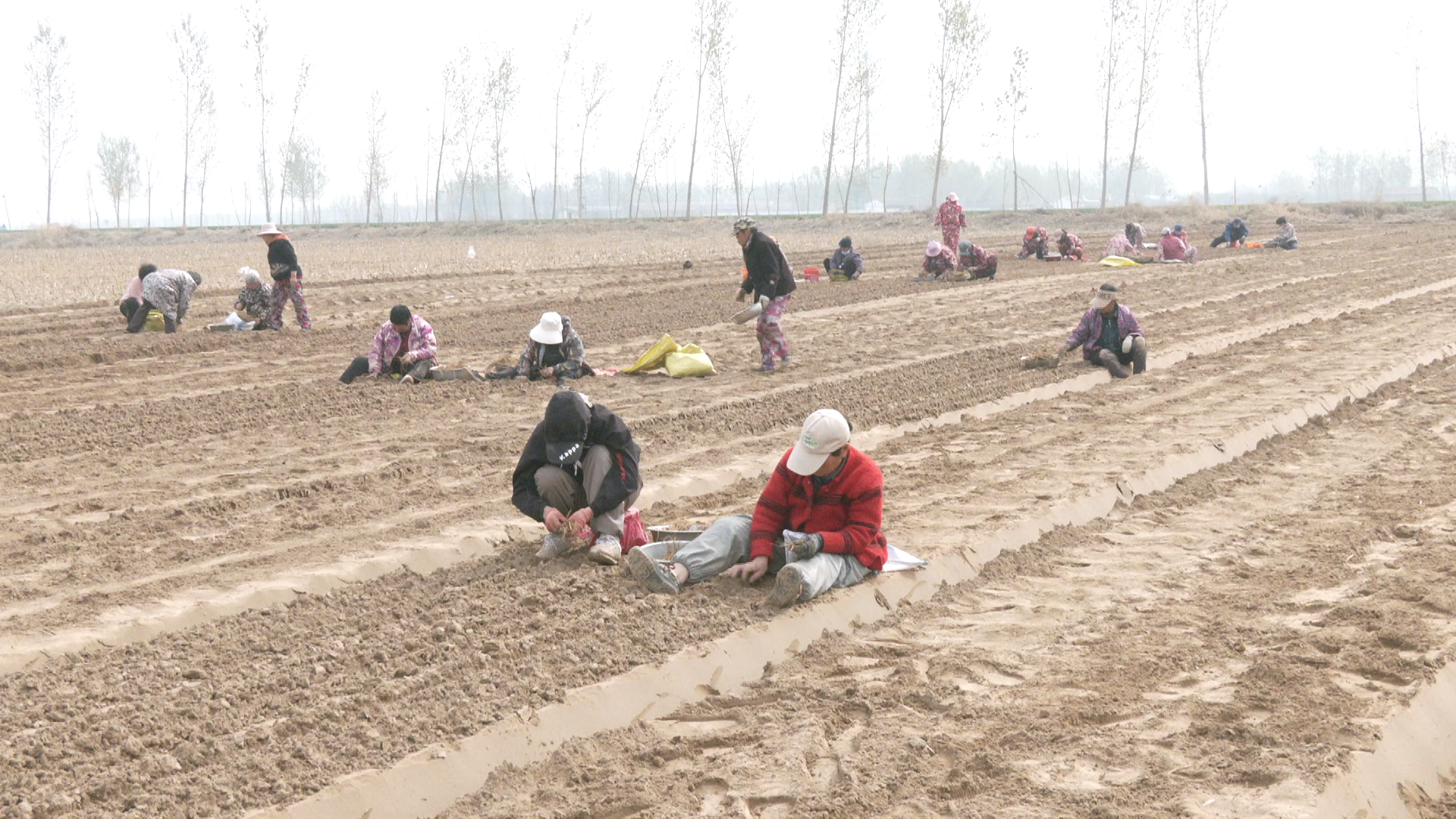4月8日,在棗強縣嘉會鎮馬田村的藥材種植基地,村民們正搶抓農時,將一棵棵黃芩苗栽種到地里,田間地頭一片繁忙景象。
