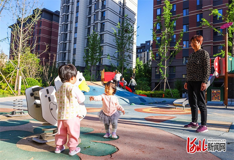 2024年4月30日,在雄安新區容東片區南文營社區內,孩子們在小區內玩耍。(資料片)河北日報記者耿輝攝