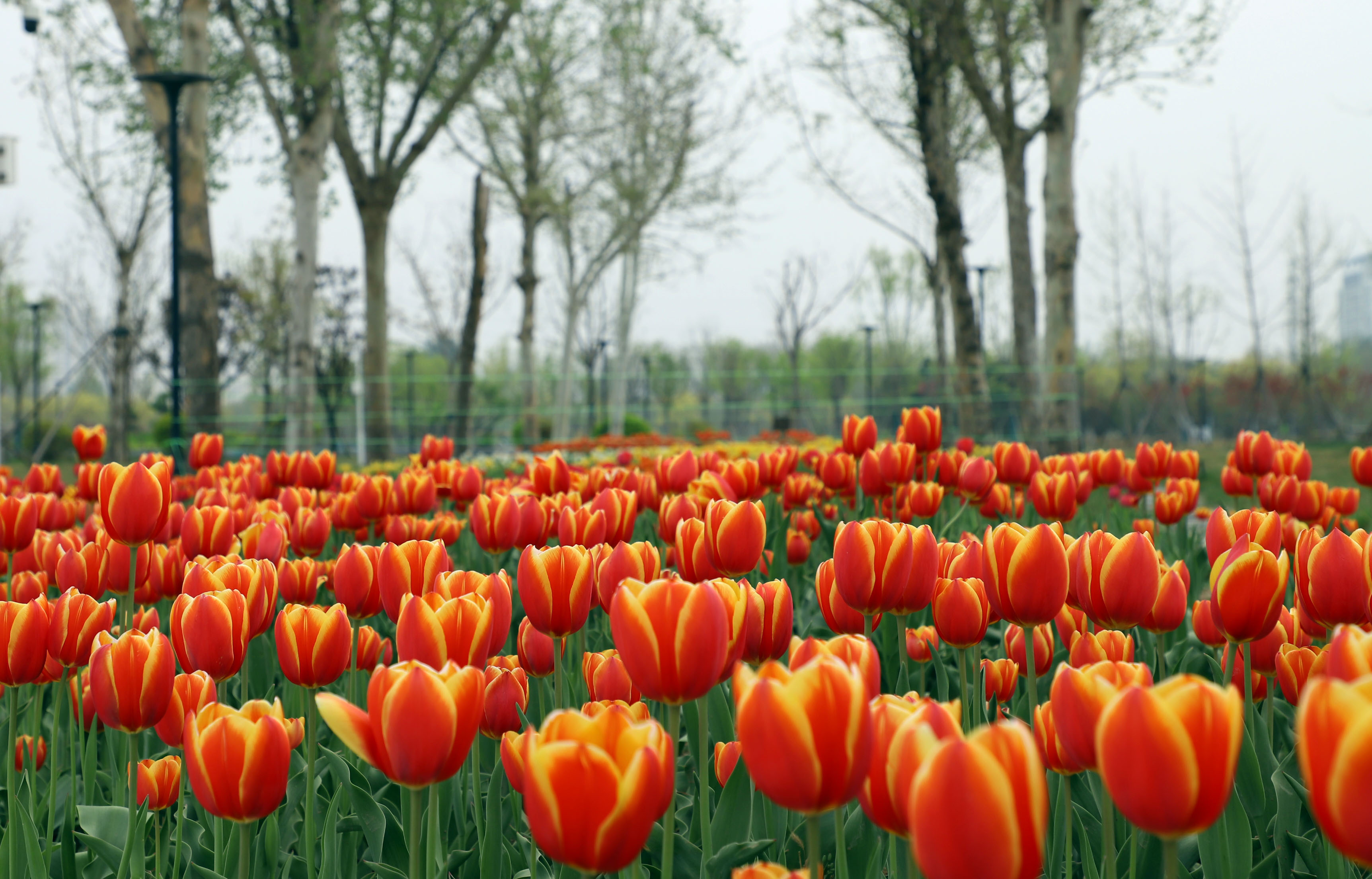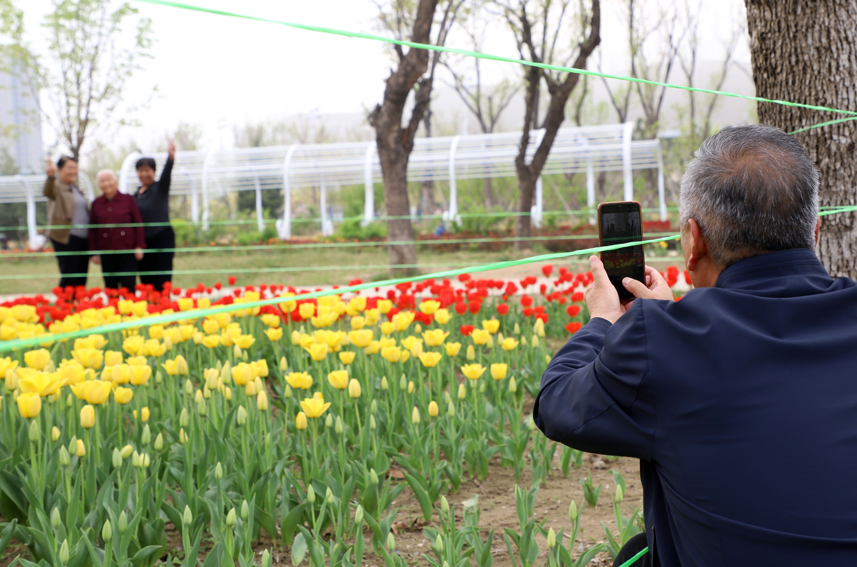 近日,衡水奧體公園內郁金香進入盛花期,大片郁金香競相綻放,吸引眾多市民前來打卡,成為城市網紅打卡點。