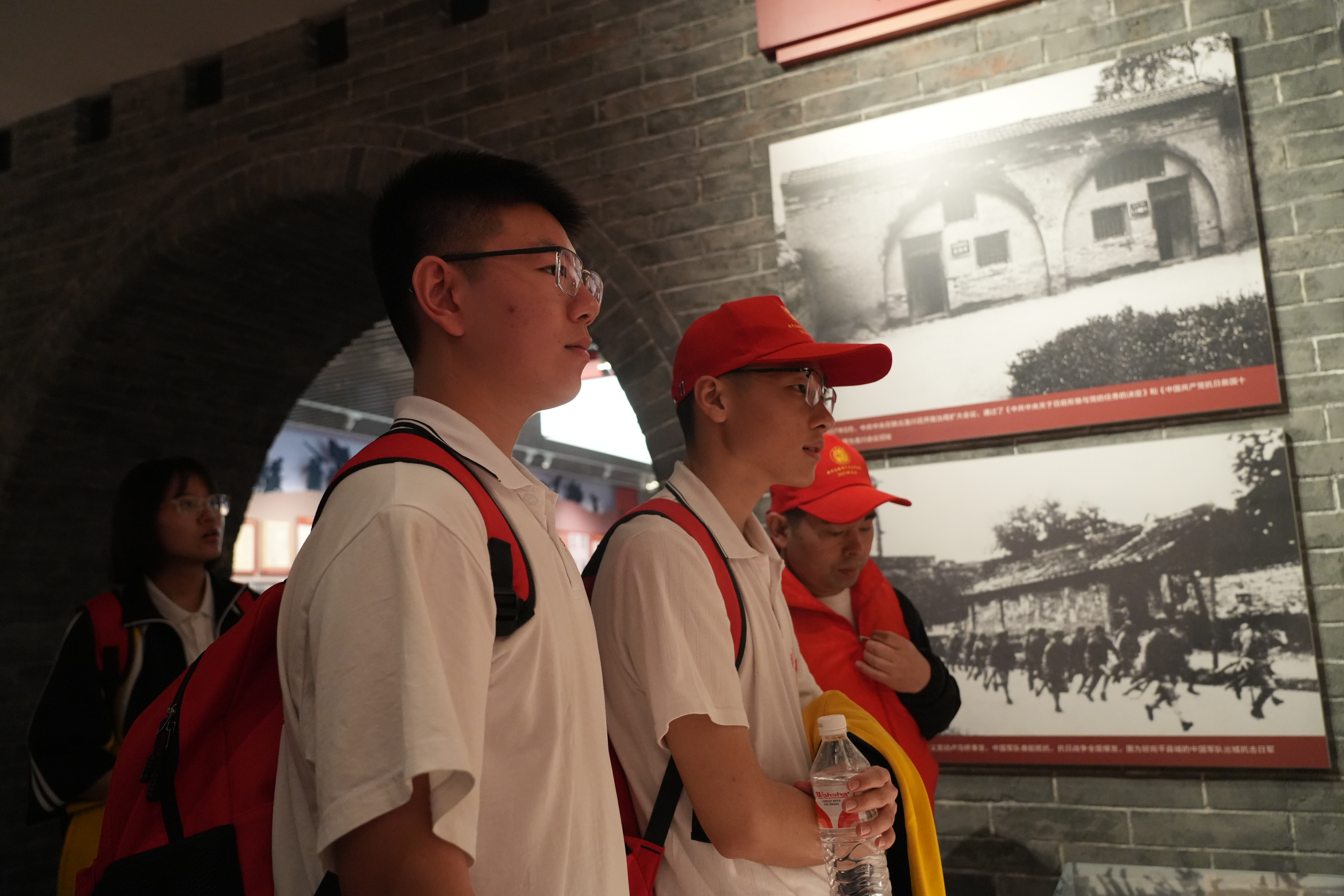 此次“微長征”的終點(diǎn)是臺城村的中共第一個農(nóng)村支部紀(jì)念館。在紀(jì)念館斑駁的展柜前,學(xué)生們觸摸著浸透血與火的歷史溫度。“看到烈士遺物時,膝蓋的刺痛突然消失了。”學(xué)生邢瀚躍激動地說:“先輩們犧牲時,有很多和我們年齡相仿。是他們用熱血與生命換來了我們今天的幸福生活,我們自當(dāng)用同樣的熱血與青春奮斗在新時代新征程中!”展柜里焦黑的搪瓷缸與墻外此起彼伏的加油聲重疊,學(xué)生們忘卻徒步遠(yuǎn)足的疲憊,把腰桿挺得筆直。