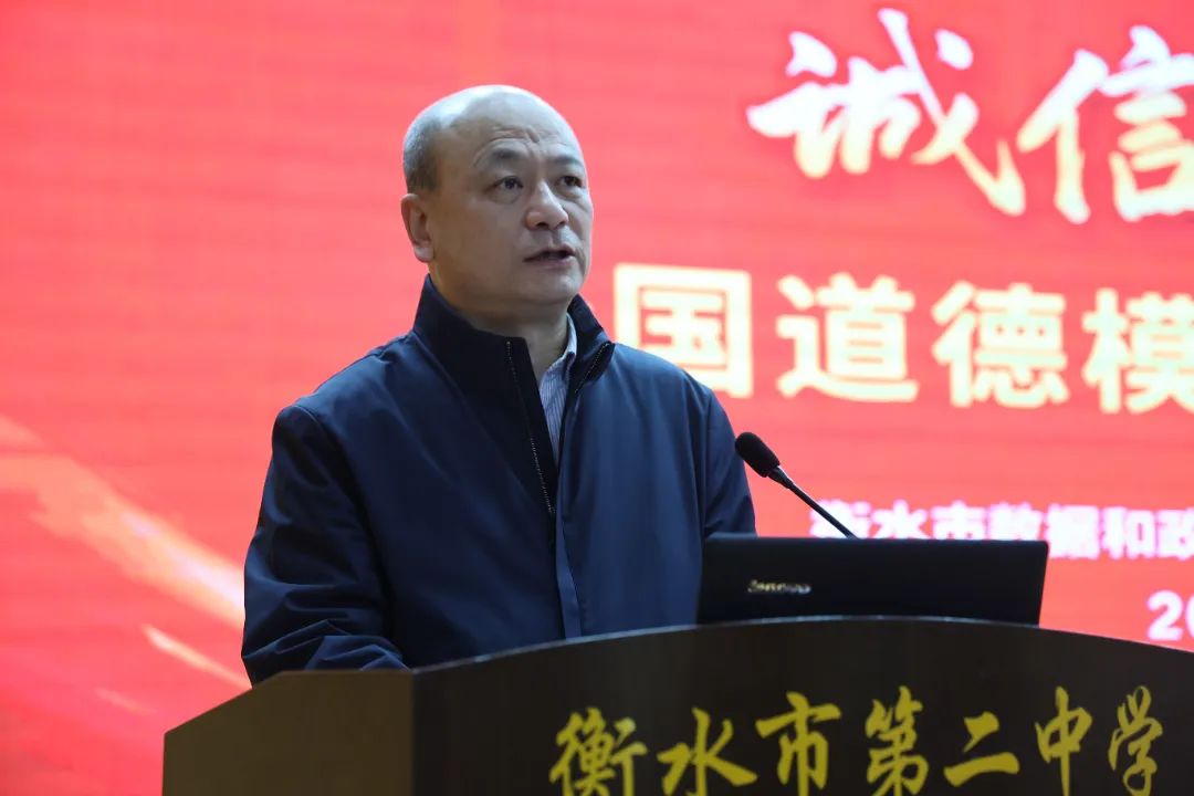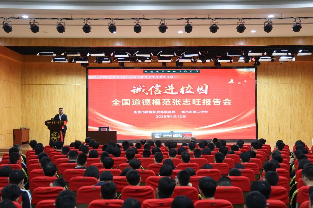 為弘揚誠信精神,營造誠實守信的校園氛圍,引導青少年樹立誠信理念,4月12日,衡水市第二中學聯合衡水市數據和政務服務局共同舉辦“誠信進校園”主題活動,邀請全國道德模范張志旺同志進校開展專題報告會。