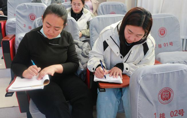 此次匯報基于趙國榮、吳帥、靳大華等教師參加全國職業院校輔導員班主任培訓的所學所感。吳帥老師以“三全育人背景下班級建設務實工作”為主題,通過生動的案例、精準的數據,從全員協同、全程銜接、全方面銜接等方面聚焦三全育人,深入剖析如何深化班級建設。臺下老師們凝神專注,認真記錄關鍵要點。