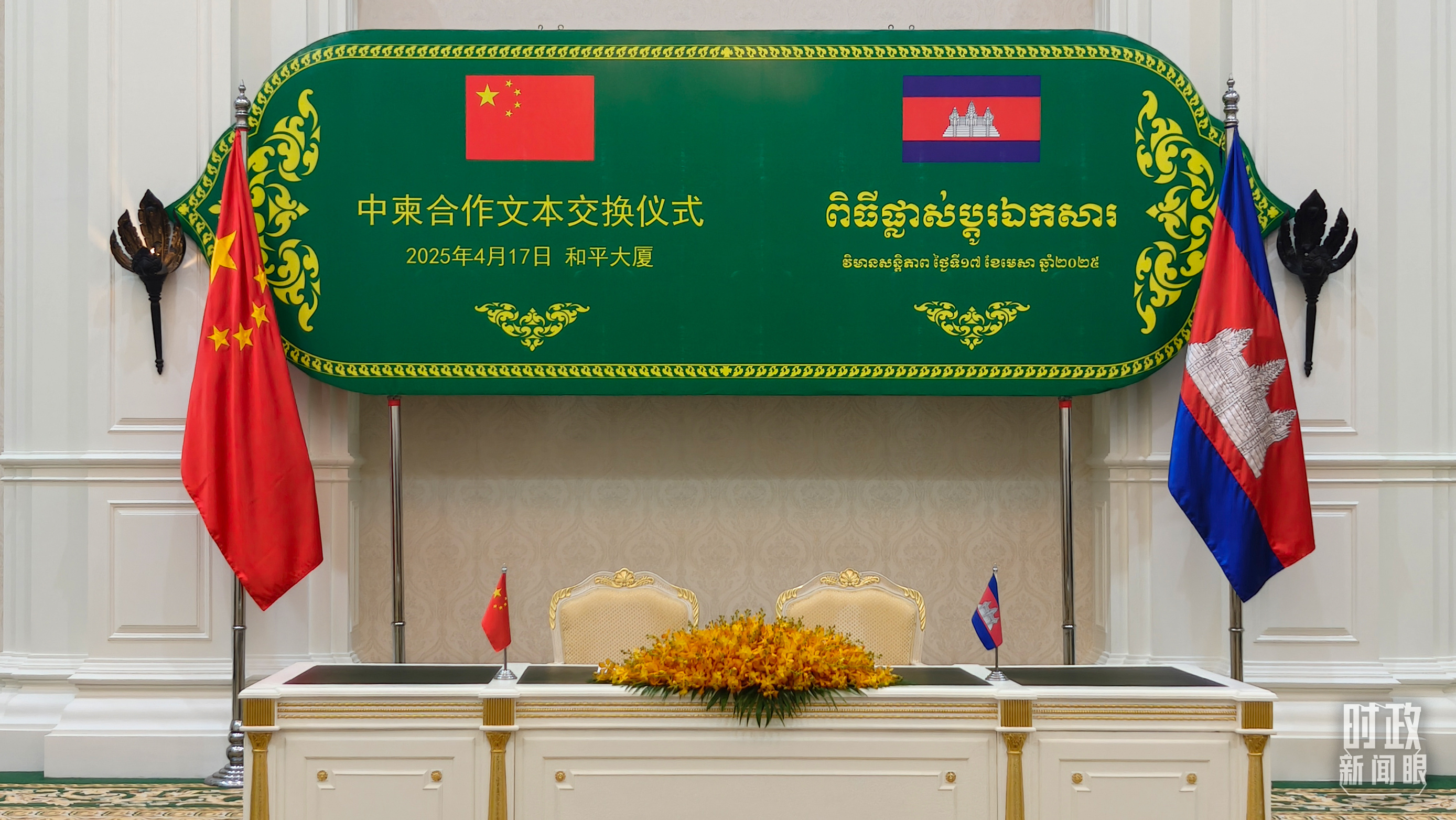 △中柬合作文本交換儀式現場。(總臺央視記者楊立峰拍攝)