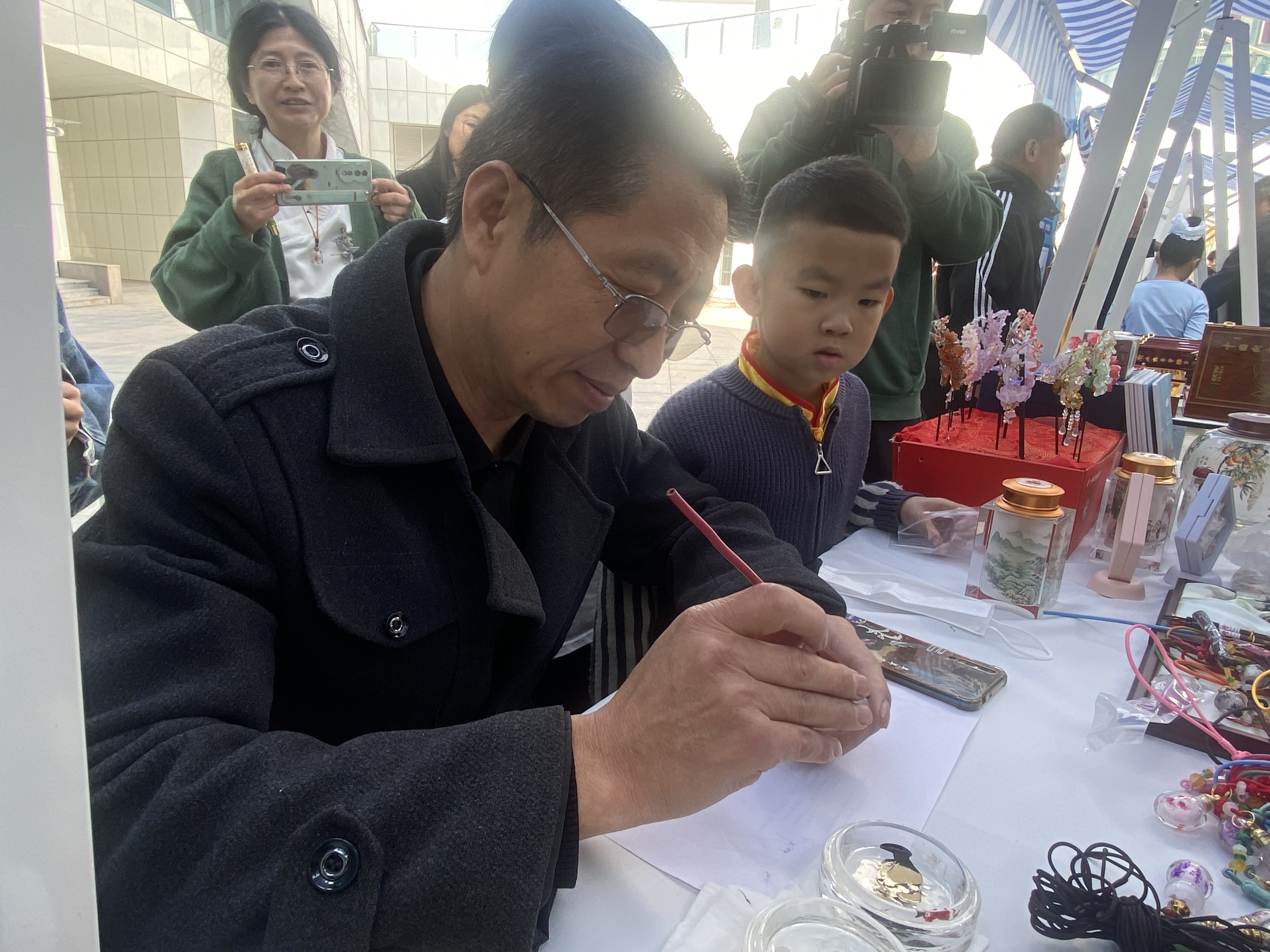 啟動儀式結束后,嘉賓及市民在工作人員引導下,參觀了“跟著非遺讀衡水”市集活動。市集上,衡水內畫、武強年畫、衡水老白干傳統釀造技藝、侯店毛筆等14個攤位依次排開,涵蓋非遺項目、民間手藝人作品、手作達人創意以及圖書館特色展示。衡水內畫晶瑩剔透,武強年畫色彩鮮艷,侯店毛筆剛勁有力,各類展品琳瑯滿目,市民們穿梭其中,近距離感受非遺文化的獨特魅力,不少人還現場購買心儀的文創產品。