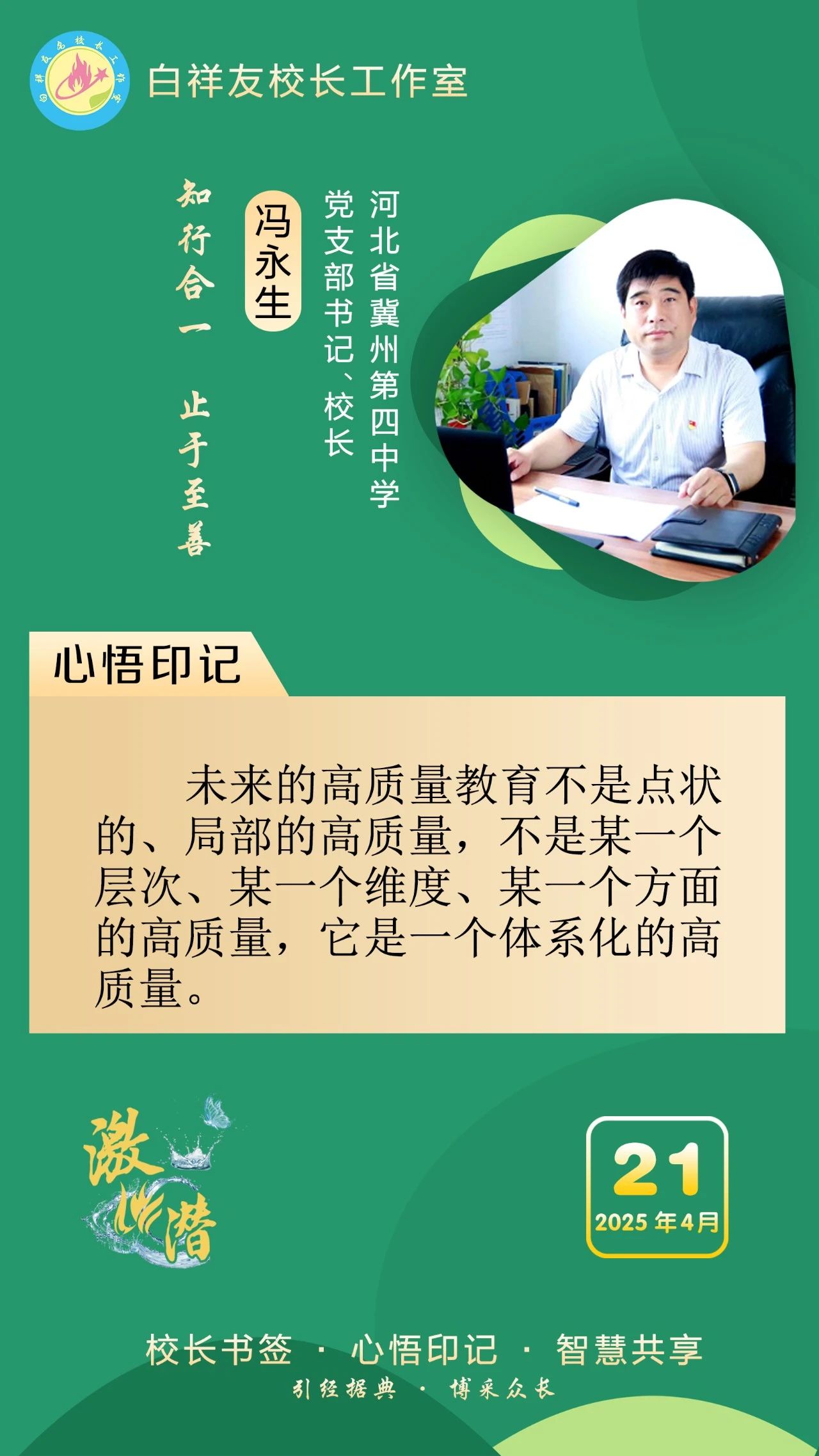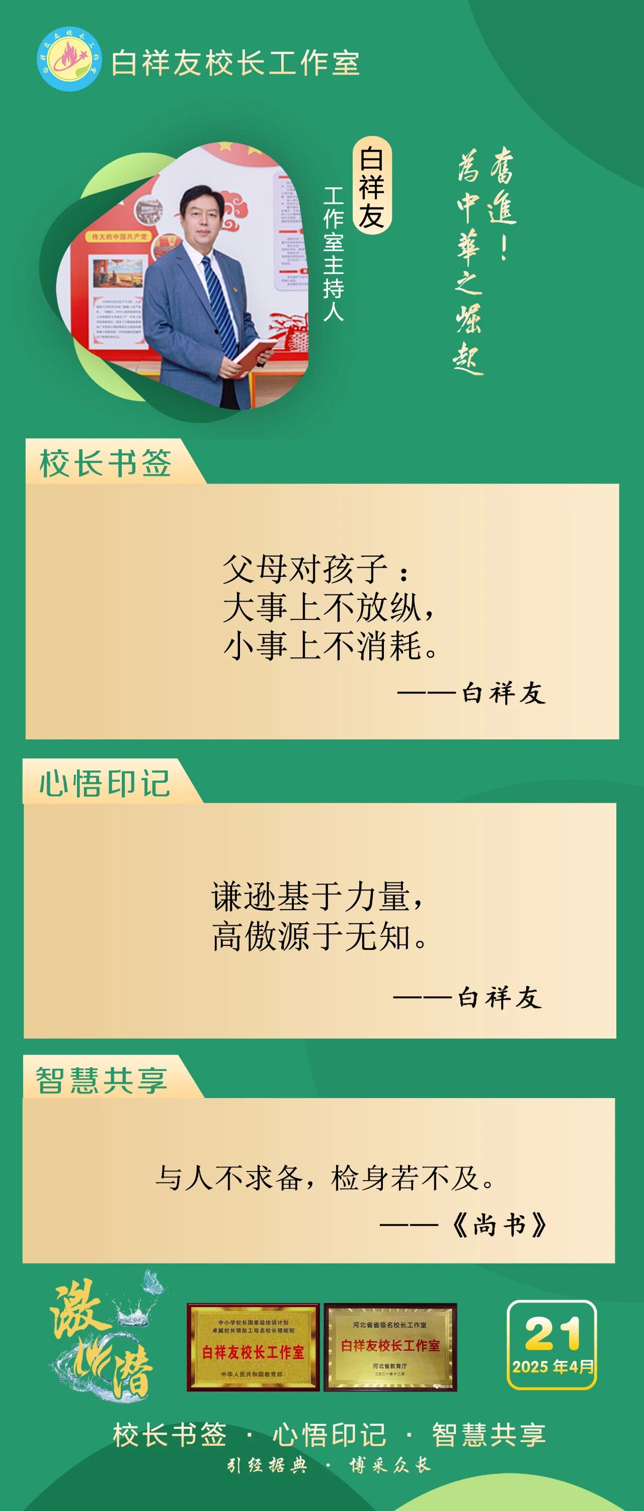 “白祥友校長工作室”成立于2019年4月,是教育部“國培計劃”中小學名校長領航工程、河北省首批名校長工作室,目前省內外成員校56個。工作室堅持“資源共享、智慧共融、互助共贏”理念,已成為思想碰撞的交流場,資源共享的品牌站,成果展示的輻射源。