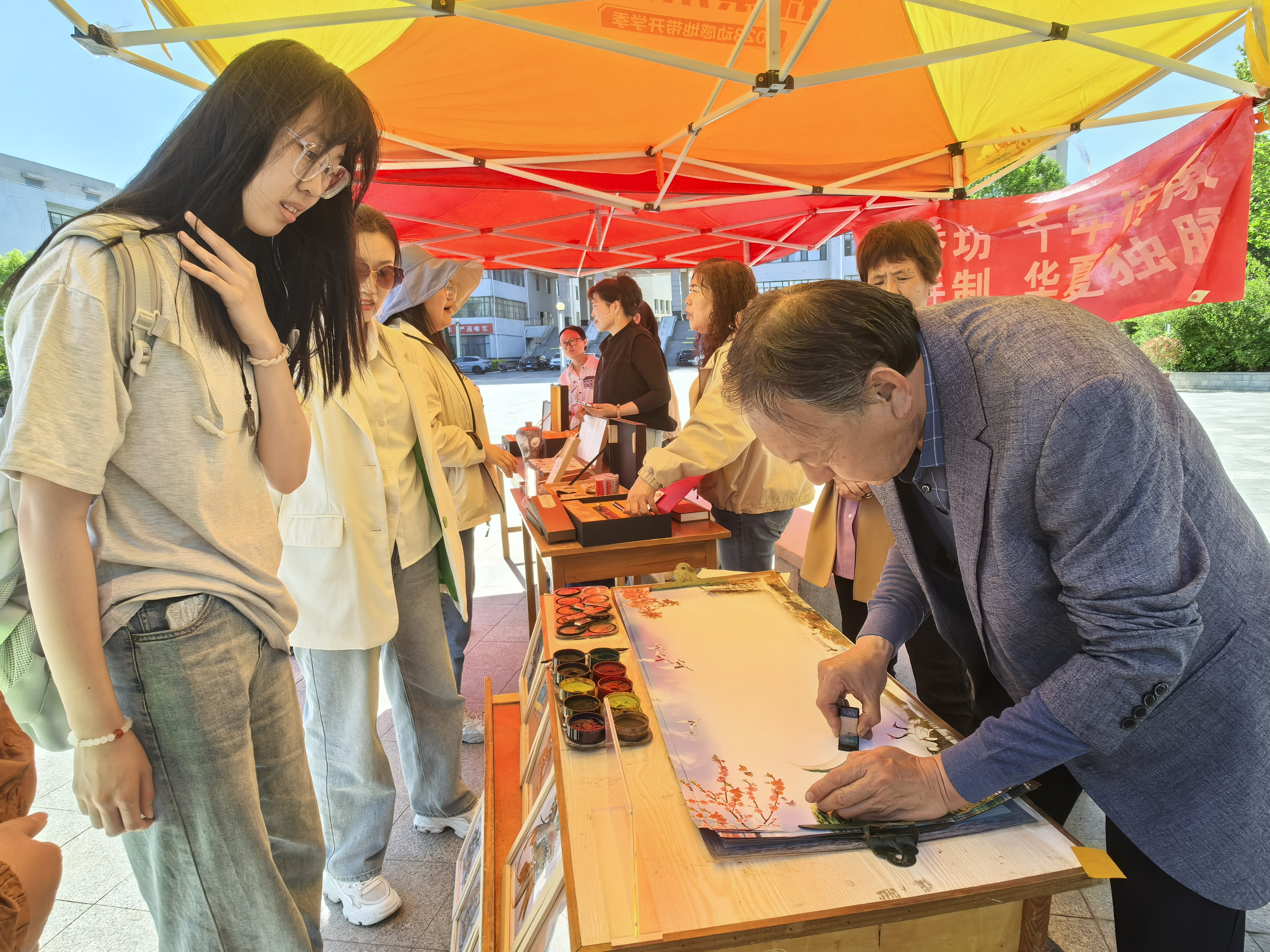 活動現場還設置了非遺市集板塊,國家級非遺項目衡水內畫、刻銅藝術,省級非遺項目武邑硬木雕刻、深州黑陶制作技藝、景縣銅胎畫琺瑯技藝、阜城剪紙、料胎畫琺瑯(古月軒),市級非遺項目棗強面塑、布雕畫、鄭家香坊等非遺代表性項目作品,充分展現非遺傳統與現代生活美學碰撞出的火花。集市上,各類非遺項目琳瑯滿目,精美的非遺展示讓學生們對博大精深的中國文化贊不絕口。
