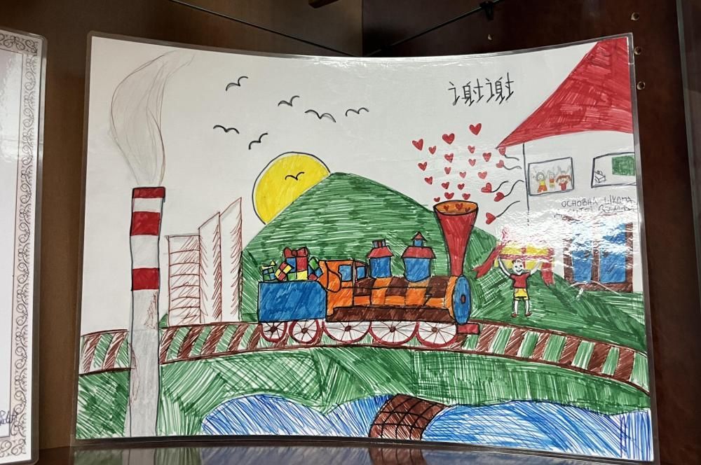 當地小學生畫筆下的斯梅戴雷沃鋼廠。(新華社發)