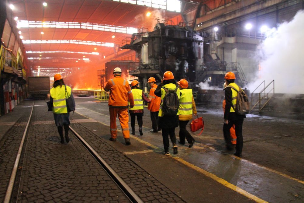 2018年12月4日,在塞爾維亞斯梅戴雷沃,河鋼塞爾維亞有限公司中方管理人員在鋼鐵廠內查看。新華社發(河鋼塞爾維亞有限公司供圖)
