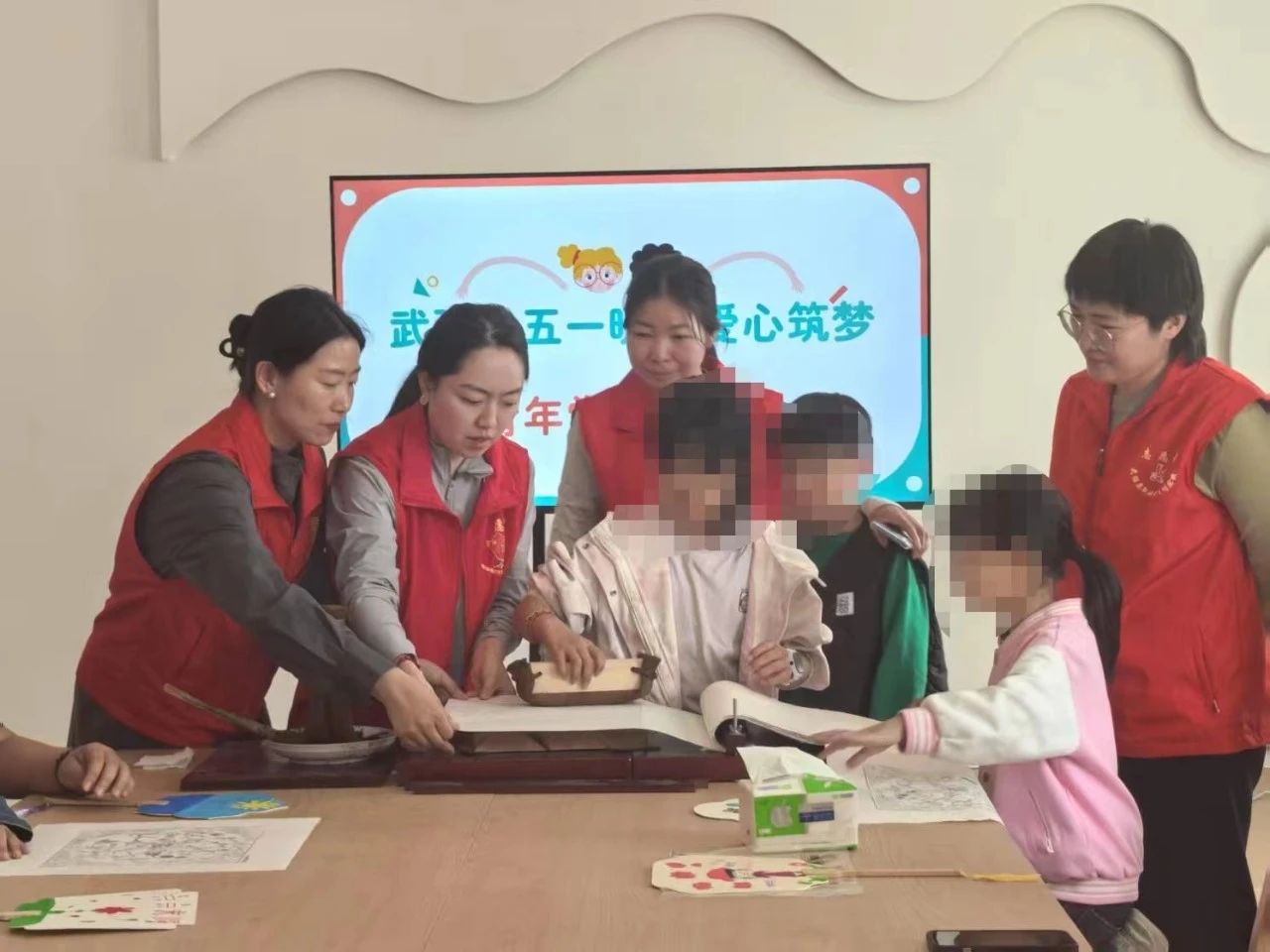 青年黨員與孤困兒童體驗年畫藝術(shù)