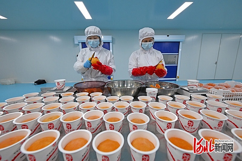 4月25日,保定沃隆農(nóng)業(yè)發(fā)展有限公司,工人在冰柿加工車間生產(chǎn)冰柿產(chǎn)品。 河北日?qǐng)?bào)記者 張昊攝