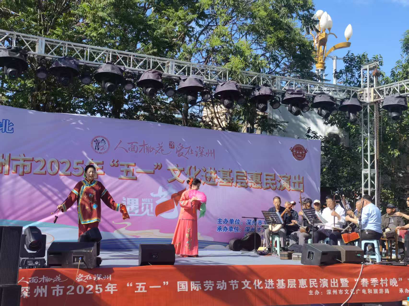 除了“春季村晚”,“五一”期間,深州市廣泛開展“人面桃花 愛在深州”文化進基層惠民演出,先后舉辦“遇見藝術”綜藝專場、“群眾文藝展演”廣場舞專場、“遇見藝術”器樂專場、“新時代文化大集”綜藝節目專場等多場主題演出活動,搭建了村民共享共樂的舞臺。