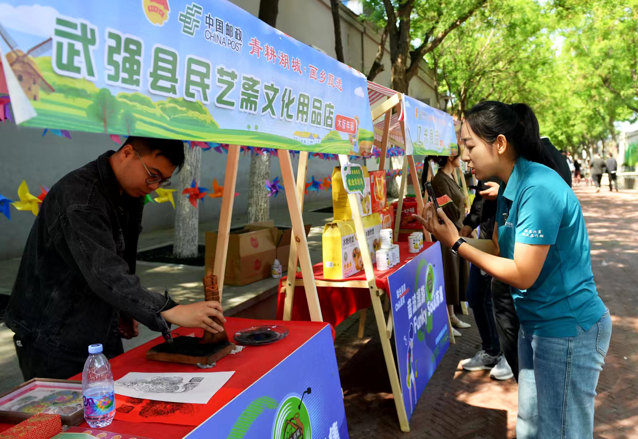 活動(dòng)現(xiàn)場(chǎng),20個(gè)參展點(diǎn)位有序排列,沙瓤西紅柿、多彩花生等琳瑯滿目的特色農(nóng)產(chǎn)品,以及精美的武強(qiáng)年畫等非遺產(chǎn)品依次陳列,吸引了眾多游客駐足觀賞,現(xiàn)場(chǎng)氛圍熱烈。