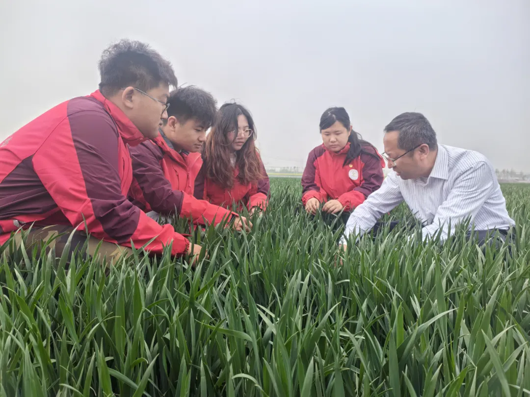“觀察麥子的葉色、莖粗,判斷水、肥給得是不是足夠,現在我們看的這畝地還不錯。”在麥田里,張衛峰帶著學生們半蹲成一圈,一邊檢查麥子的生長情況,一邊給學生們講解。