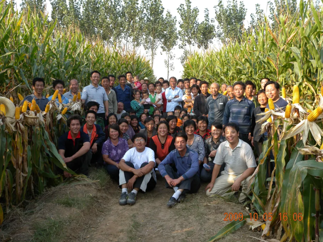 科技小院老師和同學與曲周縣甜水莊村農民一起在舉辦田間技術觀摩活動后留影(供圖/中國農業大學曲周科技小院)